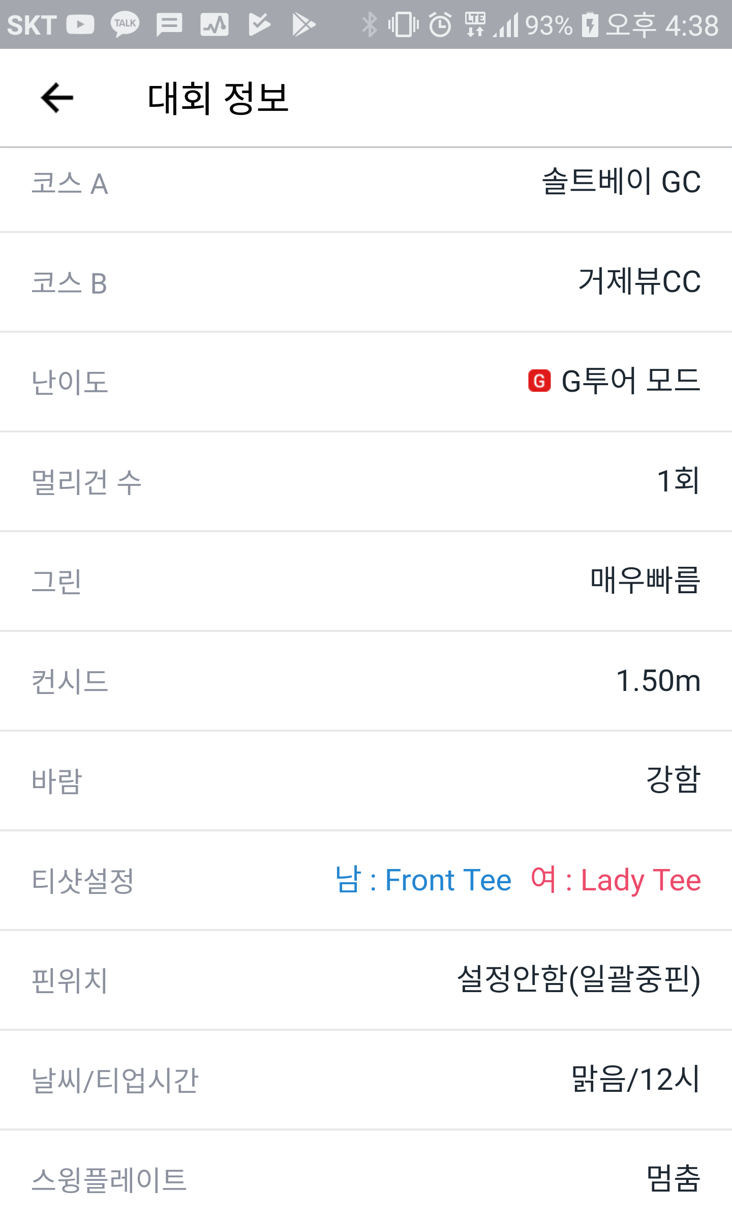 대회코스 : A코스 : 솔트베이GC