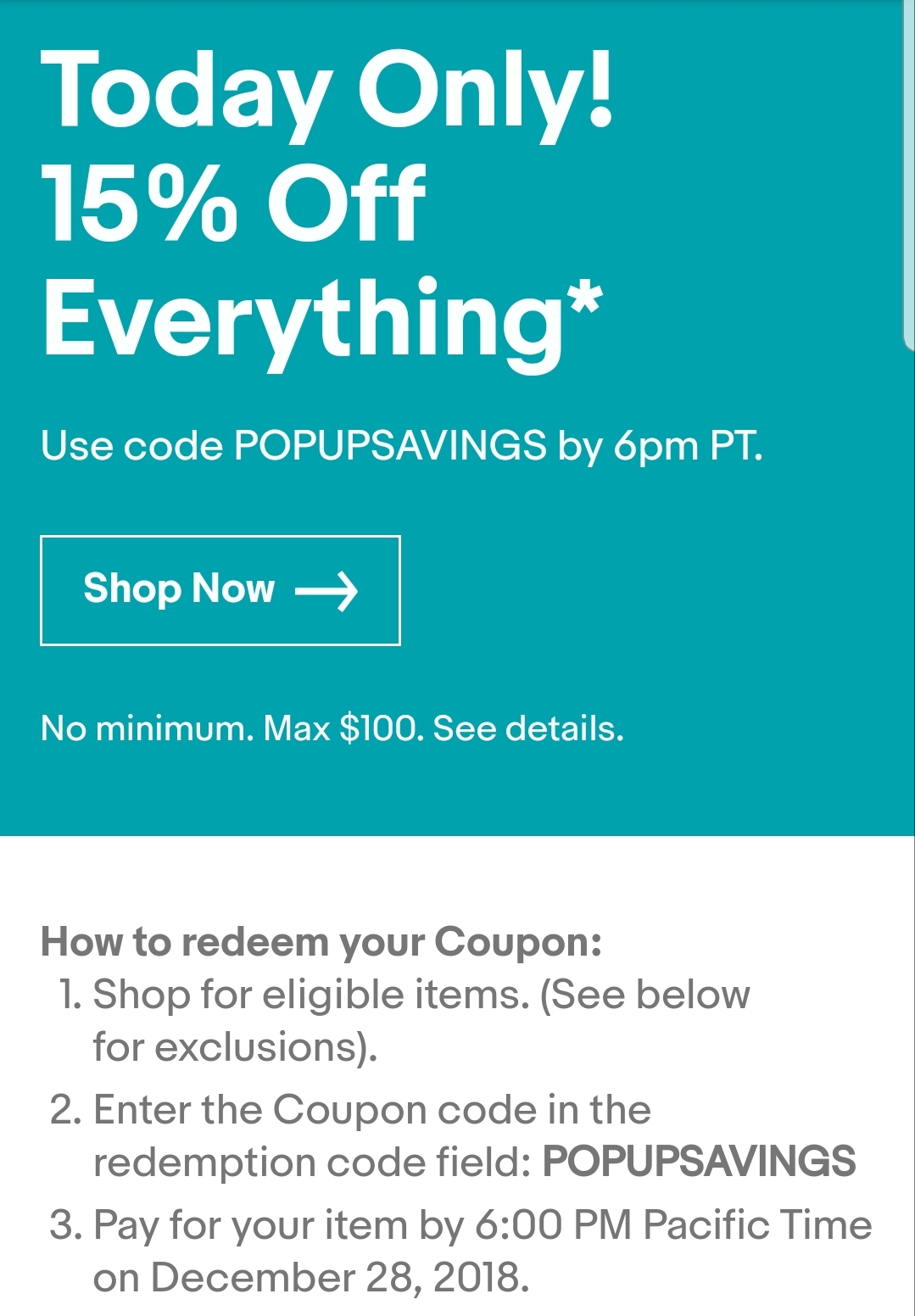 이베이 전 제품 쿠폰 15%, 4시간 남았습니다