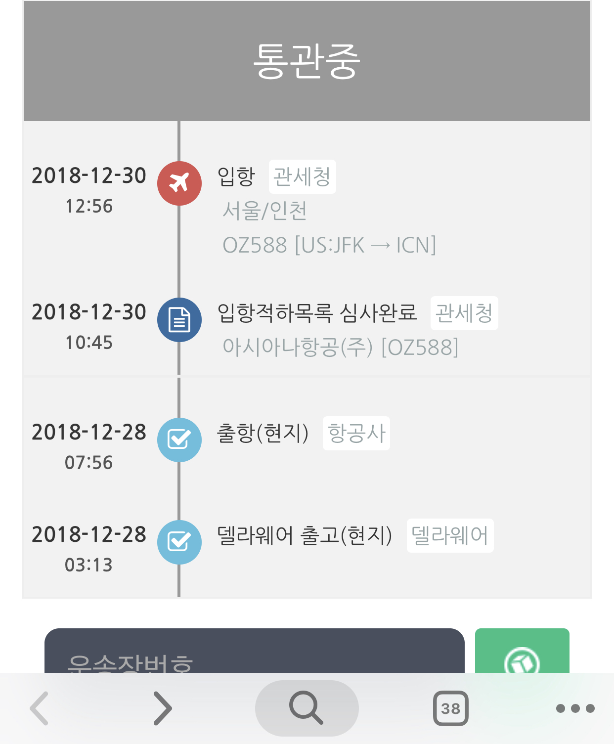 오 저도 같은편으로 들어왔나봐요 통관중이네요 |