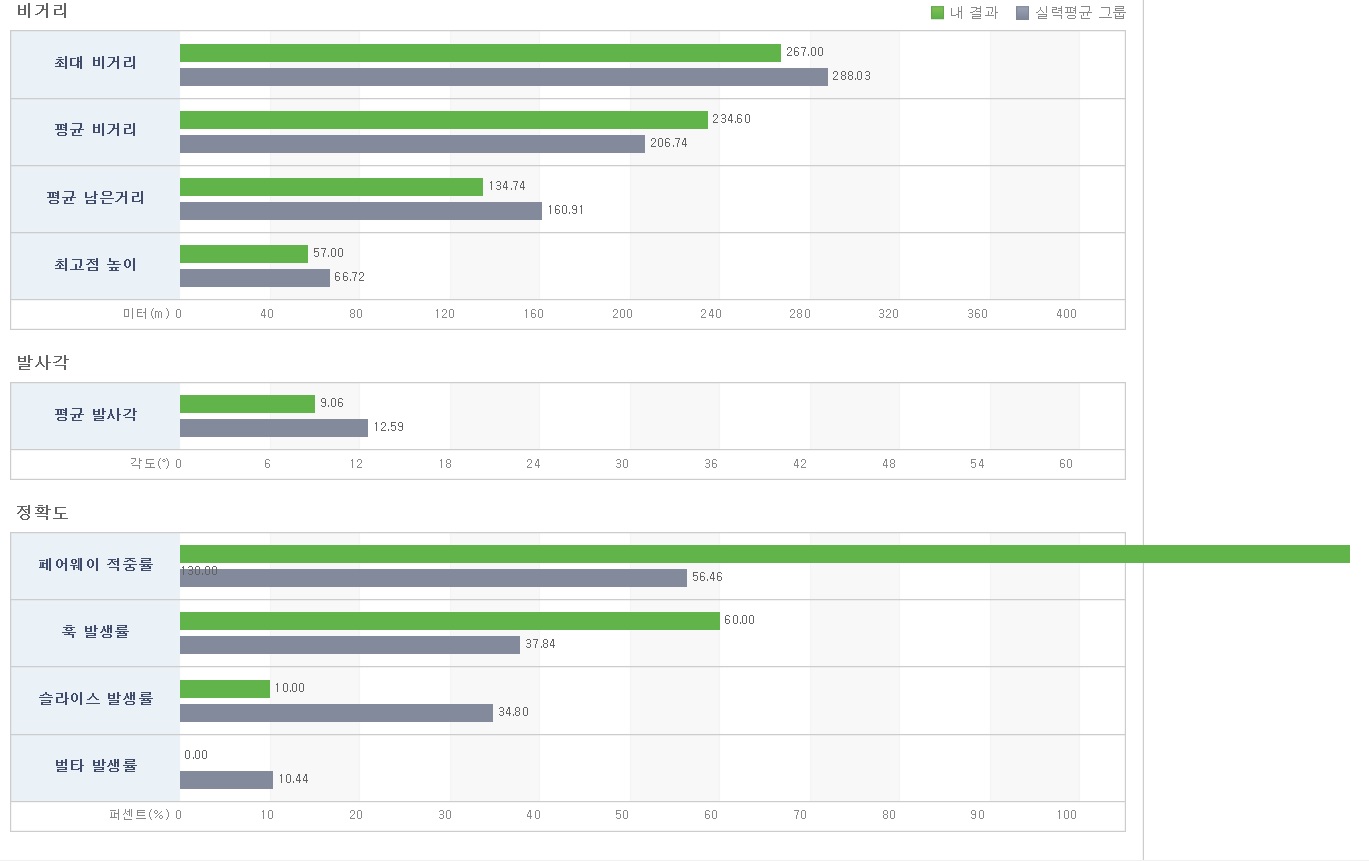 페어웨이 안착률 92.86%, 평균 비거리 235m, 좌우편차 11m라니.....
