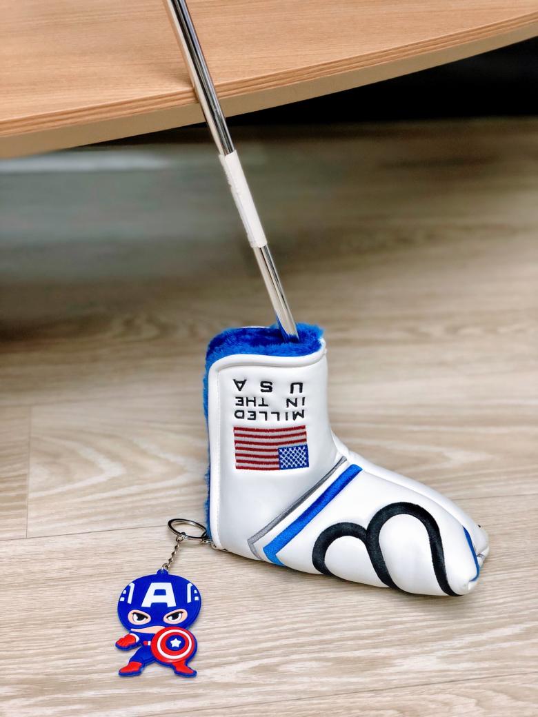 말렛형은 자석이나 찍찍이 붙어있는 날개? 부분을 바지 뒷주머니에 꼽으면 퍼팅에 방해되지 않고 좋습니다. 퍼터커버키퍼는 좀 덜렁거려서 불편해요. |