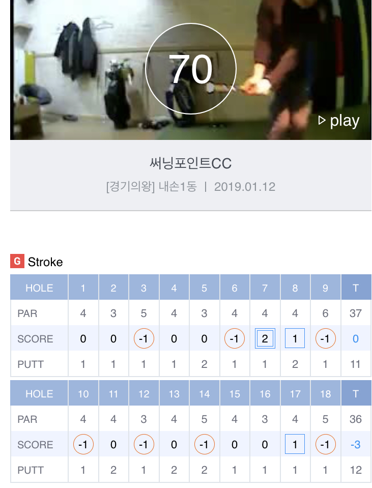 -2언더 기록한 이후에 더 이상의 발전은 없었습니다만 지난 주말 스크린에서 드뎌 1개 줄였습니다^^