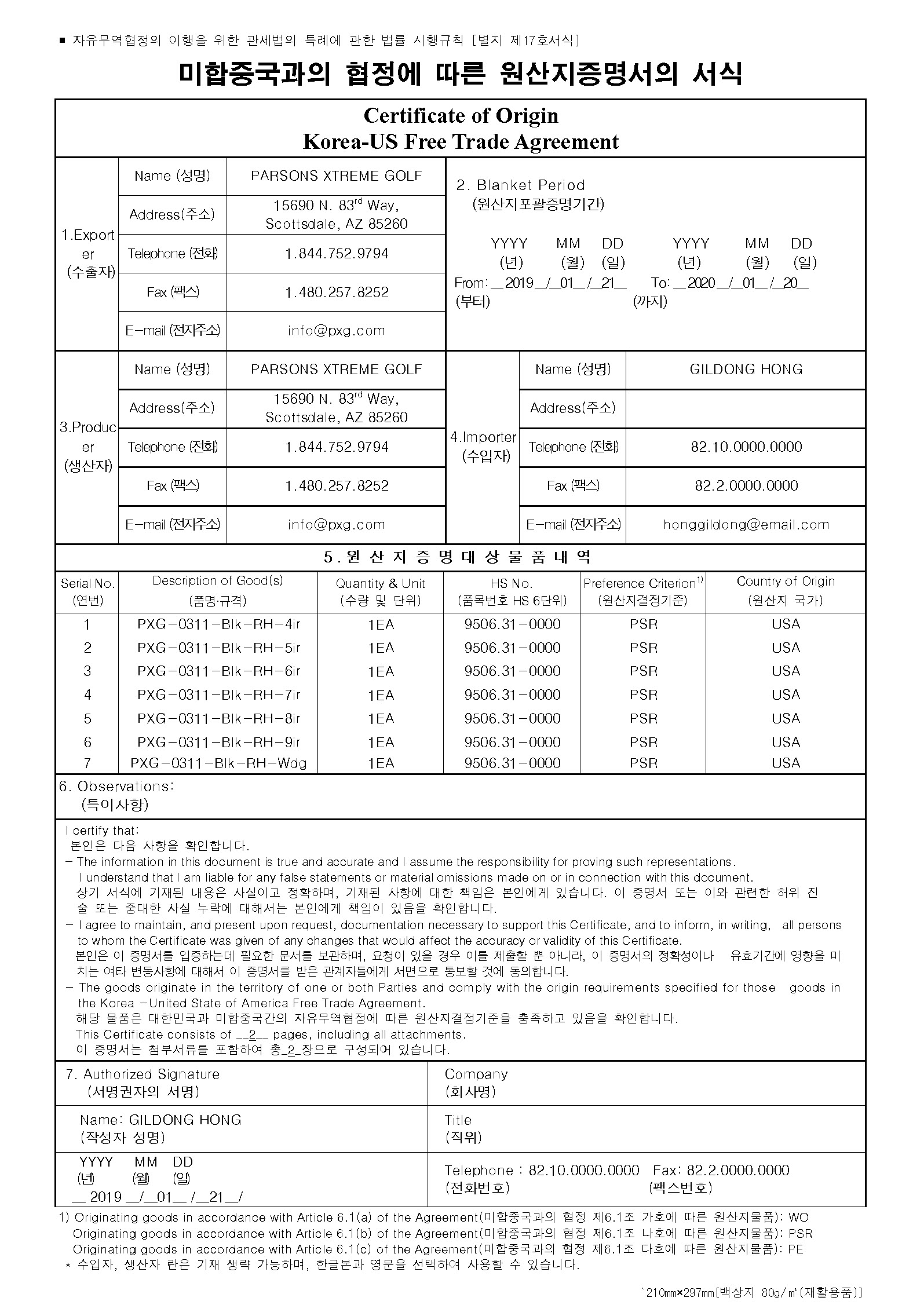 PXG 본사 주소 및 품목 코드 등 입력해두었으니