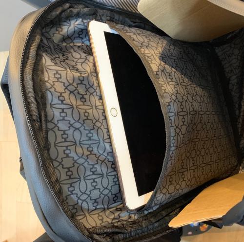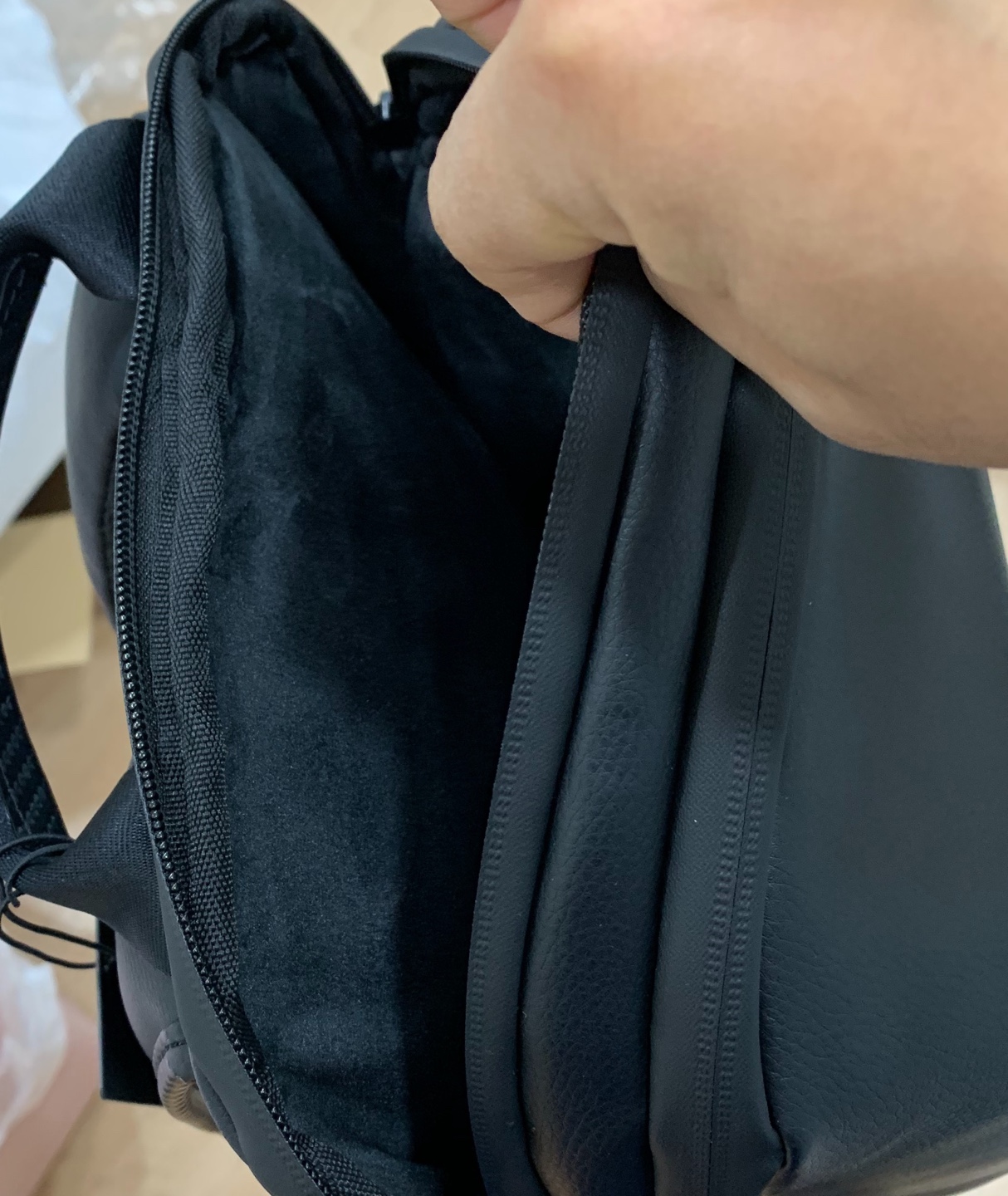 가방 메인 공간 뒷편으로 융으로 덮힌 공간이 있습니다.