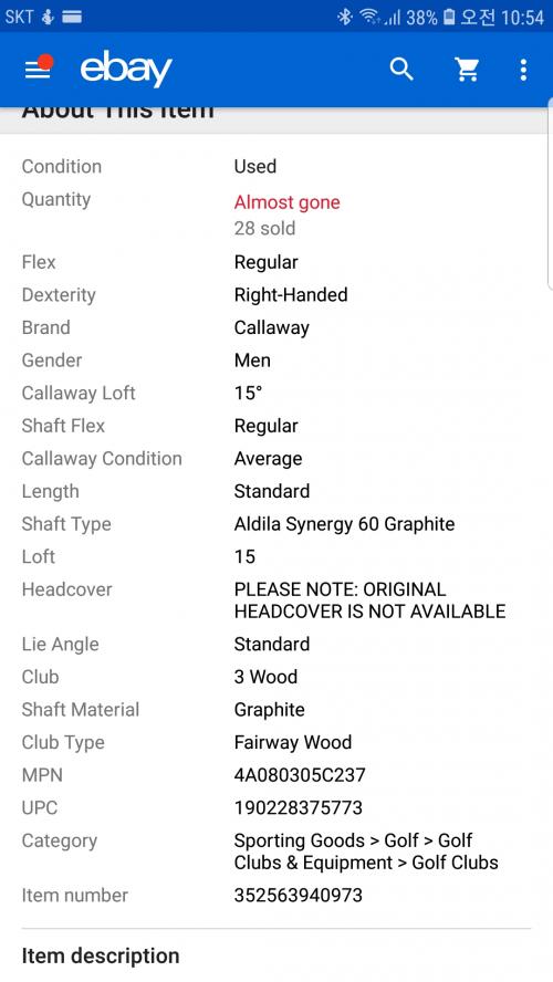 이베이 캘러웨이중고가게에서 주문했고