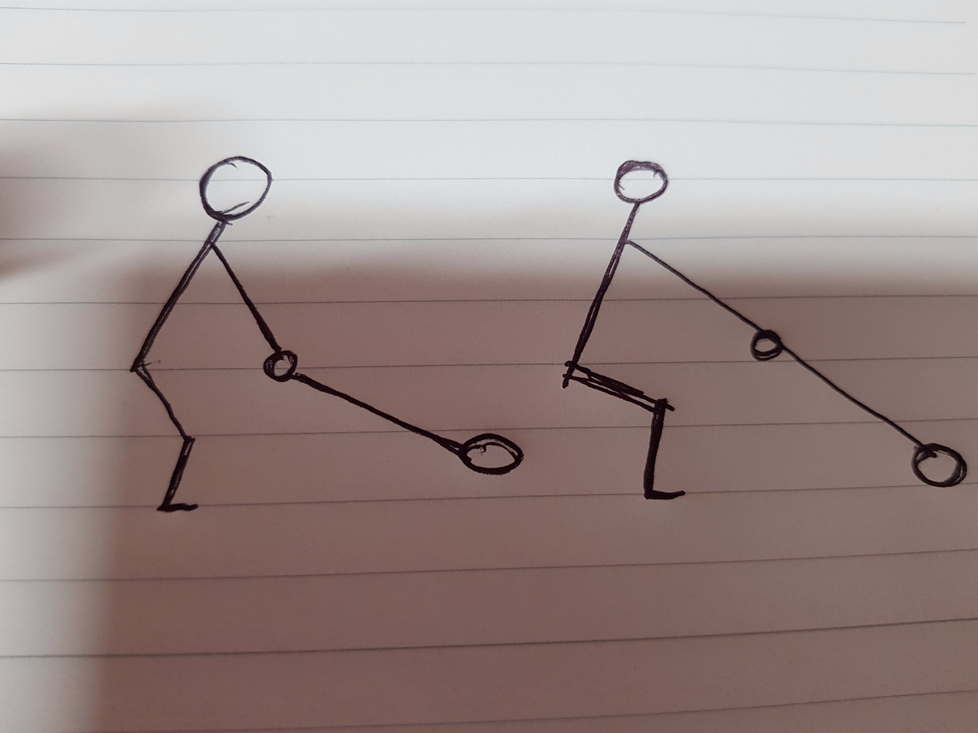 왼쪽 그림보다 팔을 더 떨어뜨려서 손과 몸 사이의 공간이 주먹 하나 반이나 두개 정도가 정석입니다.
