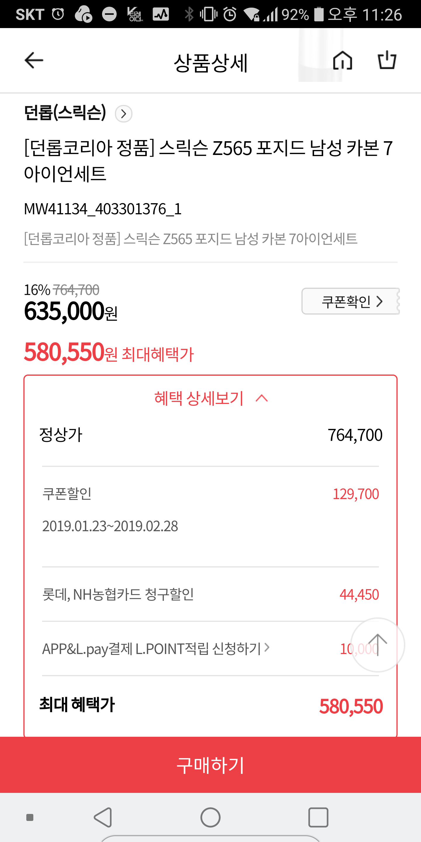 스릭슨 카본 7 아이언 세트가로 믿어지지 않을 정도로 싸네요~ 스탁 샤프트가 미야자키 Kaula면 좋은건데요. |