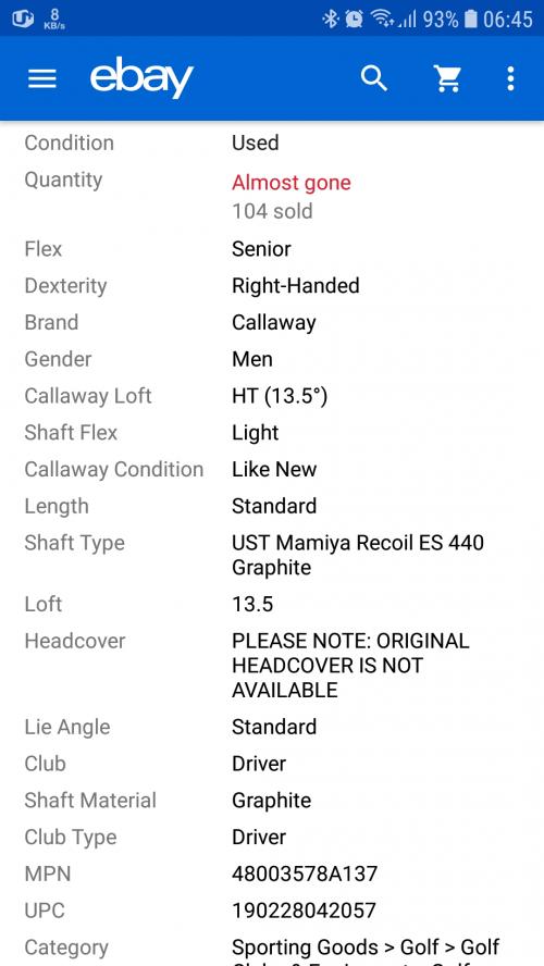 Recoil 440 ES F1 (44g)이 여성용인데, 만약 F2(46g) 라면 시니어용은 스윙스피드 70 MPH 이상 또는 드라이버 캐리가 175 야드 나갈 경우가 권장사항이라 사용 가능할 것도 같습니다.
