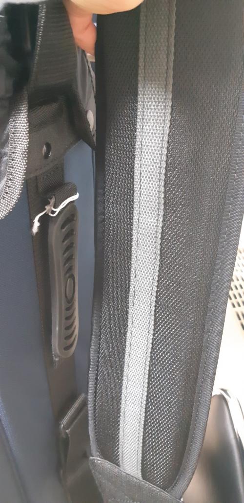 2. 손잡이를 경량으로 만들어서 그런지 천에 플라스틱으로 덧씌운 형태로 되어 있습니다. 우리나라 특성상 주차장이 좁은 곳에서 들고 다닐 때 옆차를 긁을 수 있는 사고를 만들 수 있기에 저는 단점으로 봤습니다.