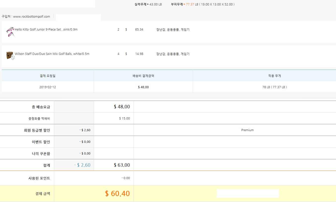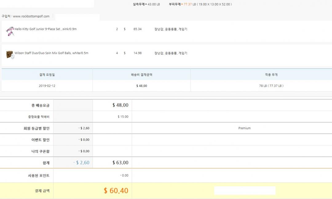 골프백 포함이라서 그런지 부피로 계산되어 많이 나왔습니다.