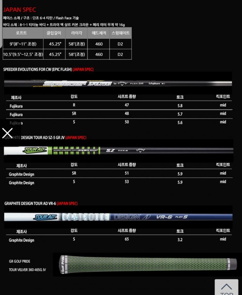 국내 발매된 에픽 플래쉬의 스탁 샤프트가 후지쿠라 블랙 50 이라고 되어 있는데