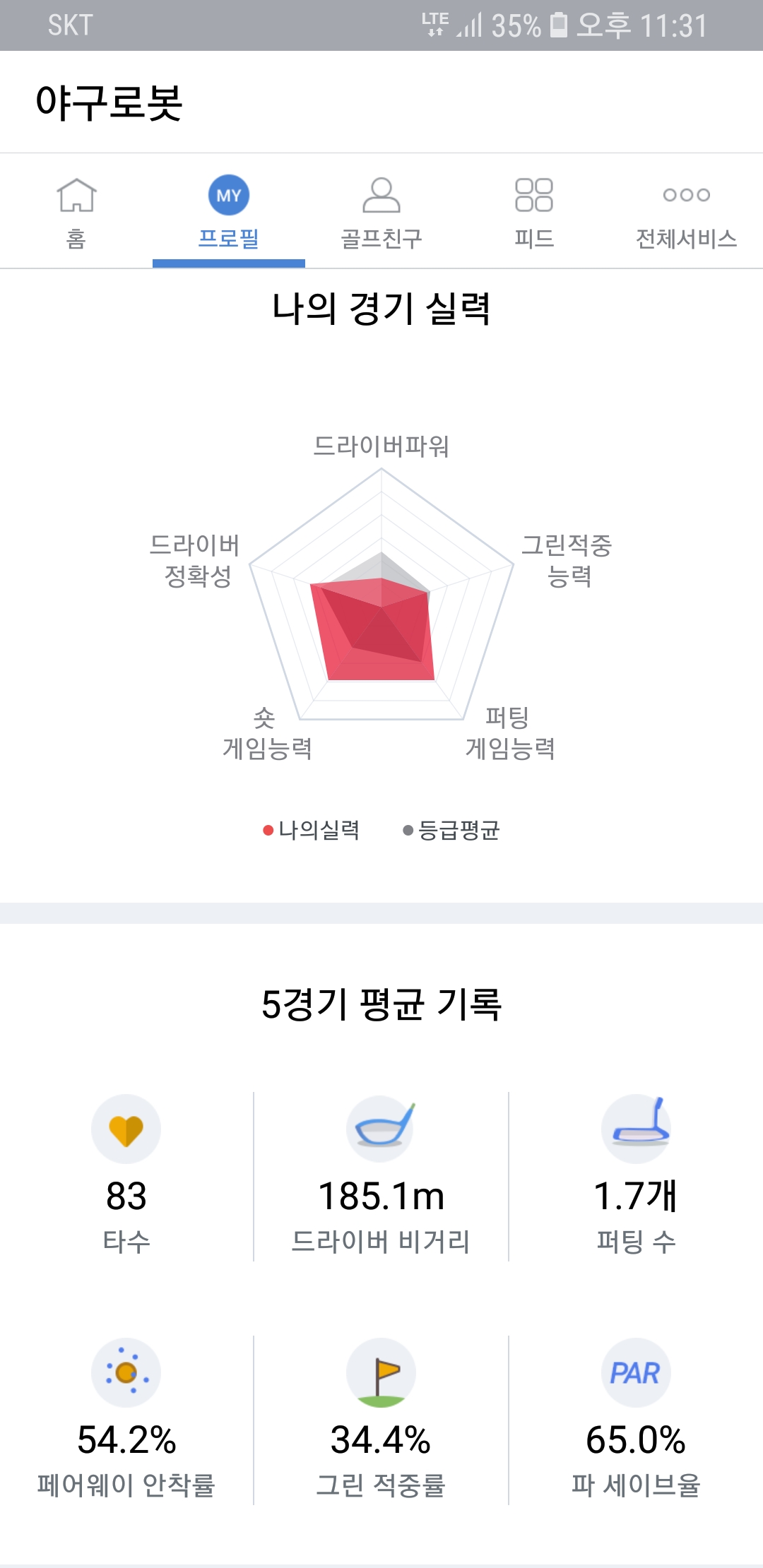 제가 첫 라운딩에서 막장 플레이를 하기 싫어서 기본기 훈련을 열심히 한 것도 있고, 엘보우 치료 하느라