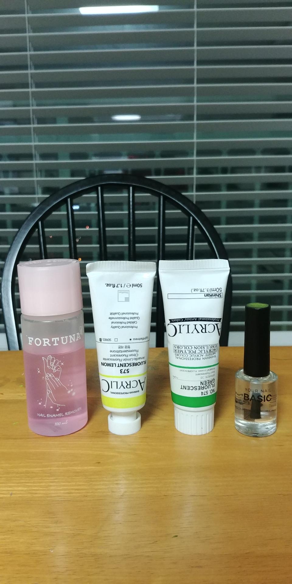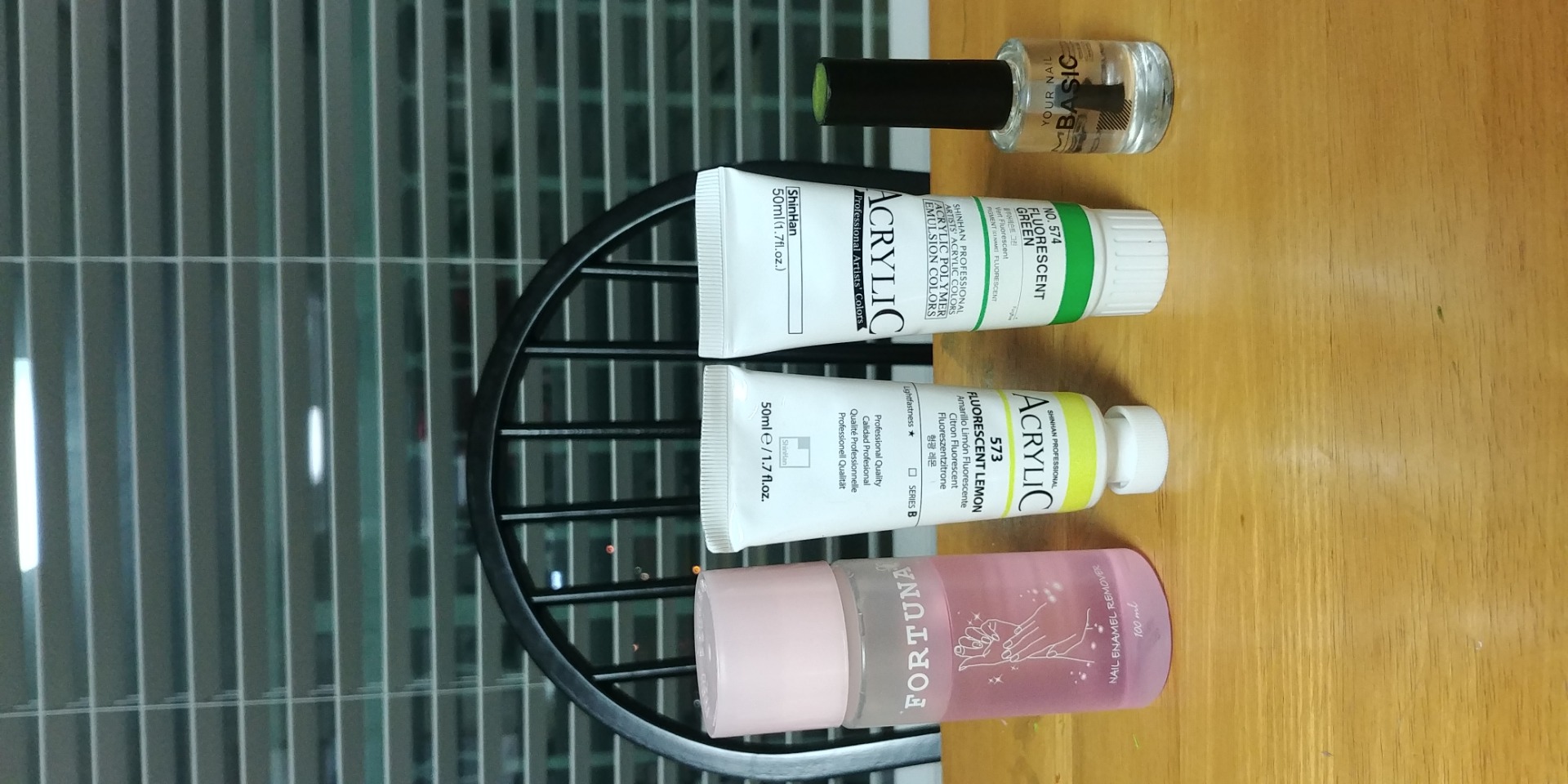 사용한 재료는 우선 아크릴 물감(형광레몬+형광그린)