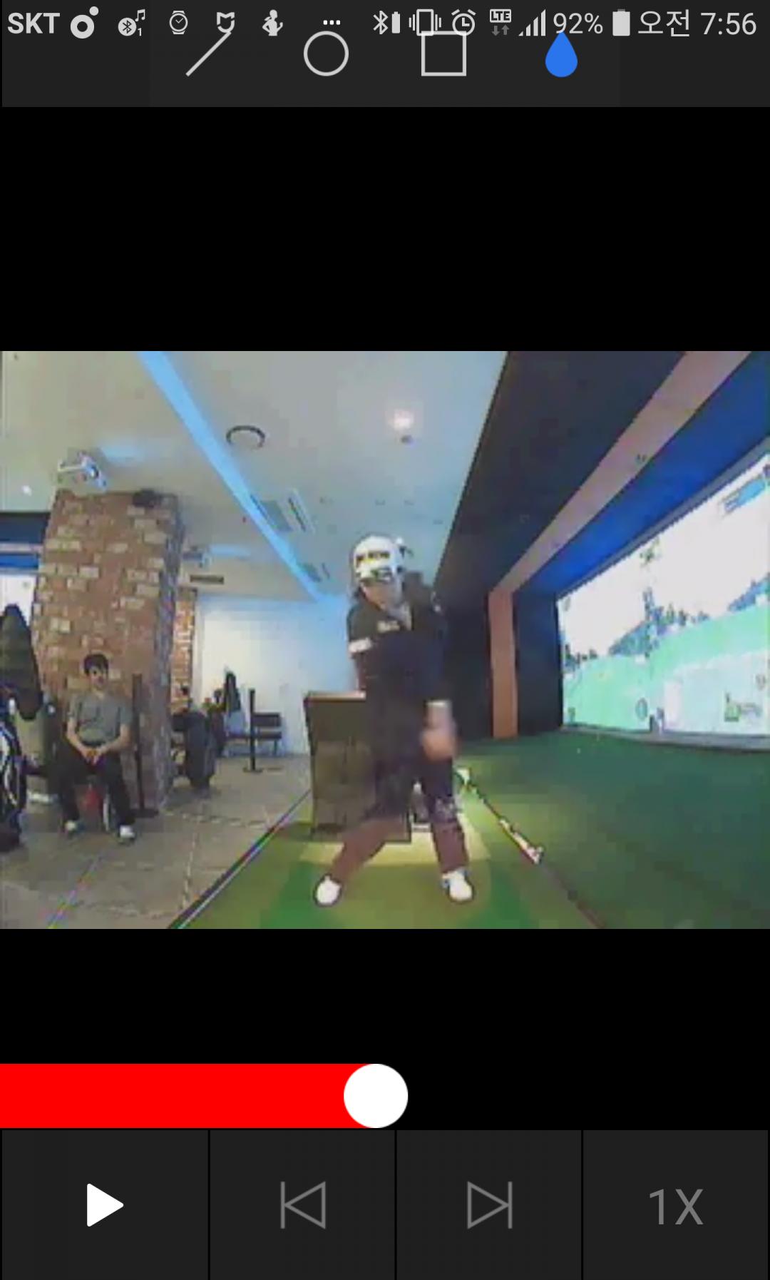 오늘 프로한테 배운 주내용이 손의힘으로만 치지말고 몸통회전으로 공은 자연스레 맞아나가야 방향성이 일관적이고 좋다하셨는데.. 역시 저 프로님도 몸통회전이 아주 잘되고 어느정도 손의힘도 함께하니 거리까지 끝내주시네요 |