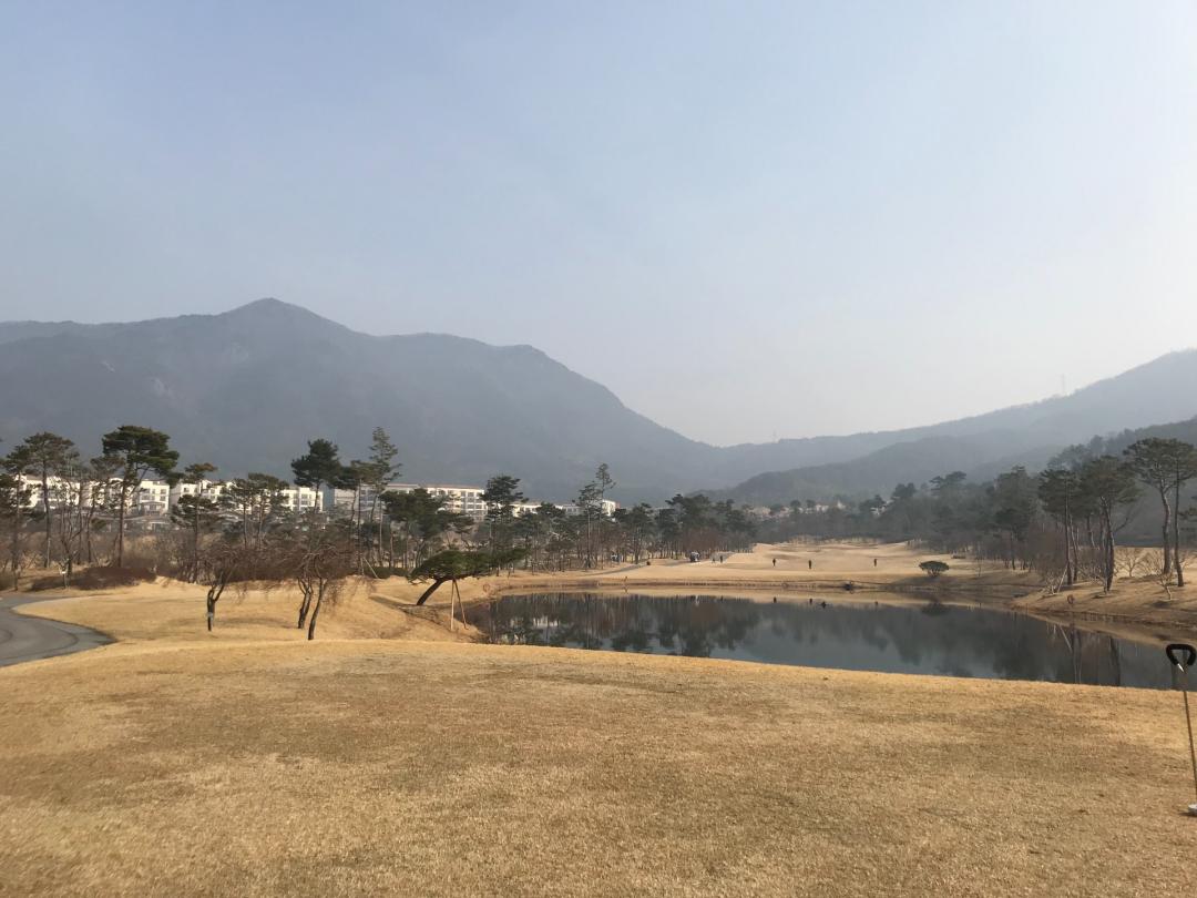 산쪽 그린은 얼어서 튕겨내지만 양지 그린은 잘 받아주고 후반 들면서 물기도 다 마르며 그린 스피드가 바뀌네요.
