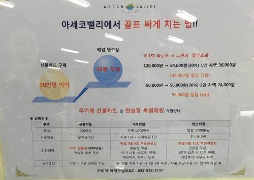 마지막으로, 아세코cc란곳은 8홀의 좀 작은 퍼블릭인데, 1.5백만원 행사를 하던데 이게 확 끌리더라고요