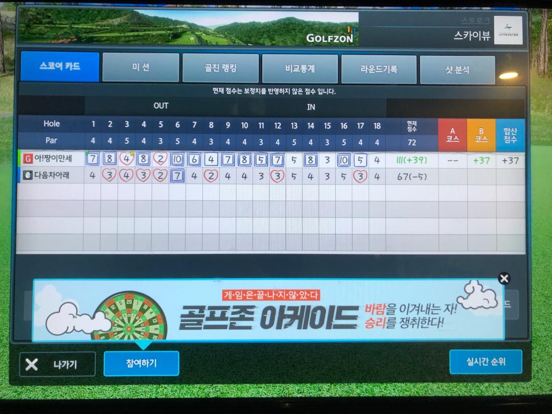 후반엔 우드로 쳤어요. 뜻밖에 우드가 잘맞아서 기분은 좋습니다.