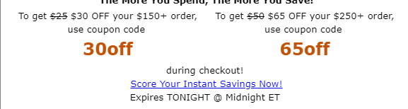 케이스 2 ) 150불 이상 30불할인, 250불 이상 65불할인
