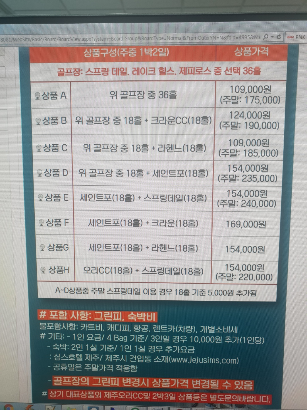 와이프 회사에 이런게 떴는데 1박에 36홀짜리더라구요