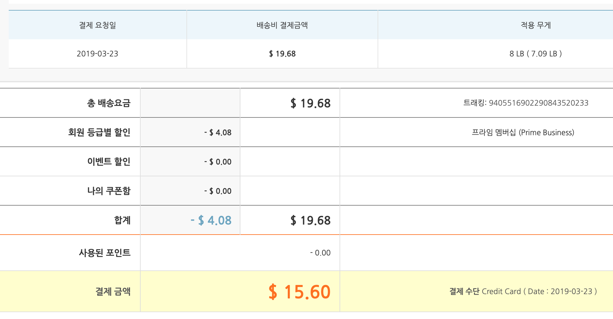 오마이집 배송비는 아래와 같이