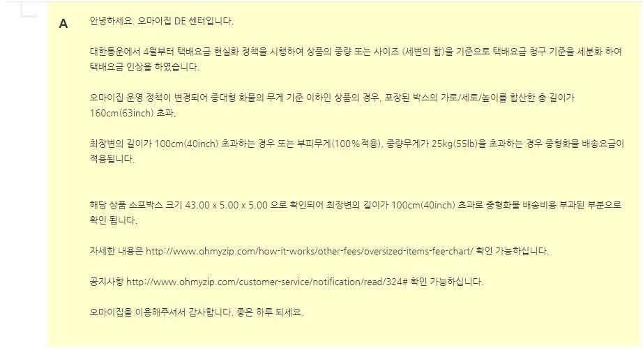 앞으로 계속 추가 화물배송비가 부과된다면... 저도 오마이집을 더 이용할 필요가 없어지는것 같아요.