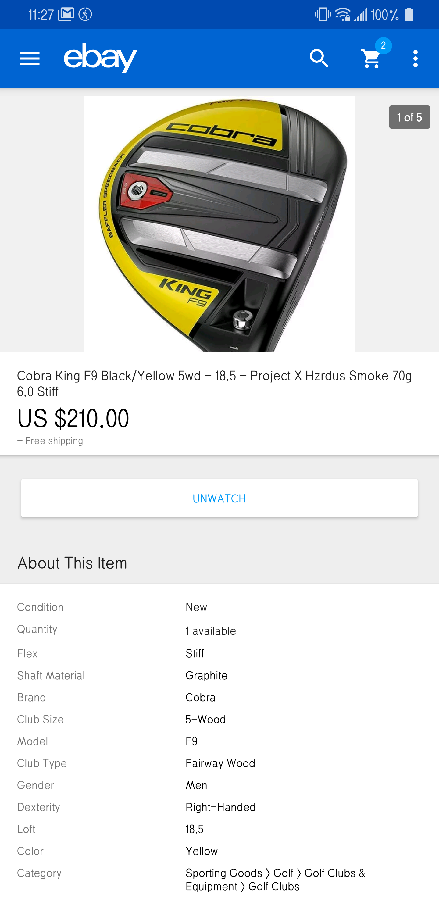 샤프트스펙이 딱 맞는 새제품 코브라 5번 우드 지켜보던것이 가격인하라고 알람이 와서 210 에 판매자와 쇼부치고 구입했네요.