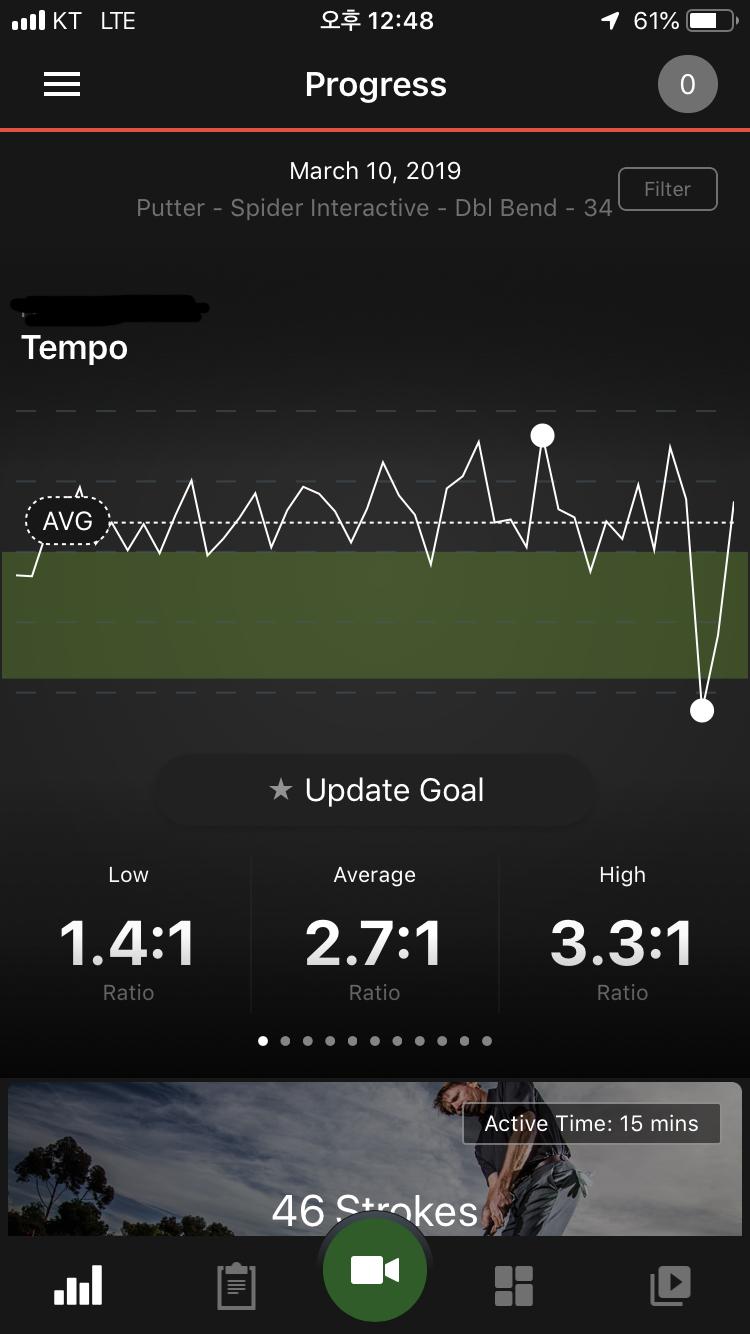 앱으로 연습을 할 수 있는데 귀차니즘으로 몇번하다가 말았네요... 퍼티스트 있으신분들은 효과가 점프합니다 거리는 안나와서요.. 템포 백스트록 포워드스터록 라이 앵글 머 이런 것을 체크하고 동영상 강의도 영어지만 시청이 가능하네요