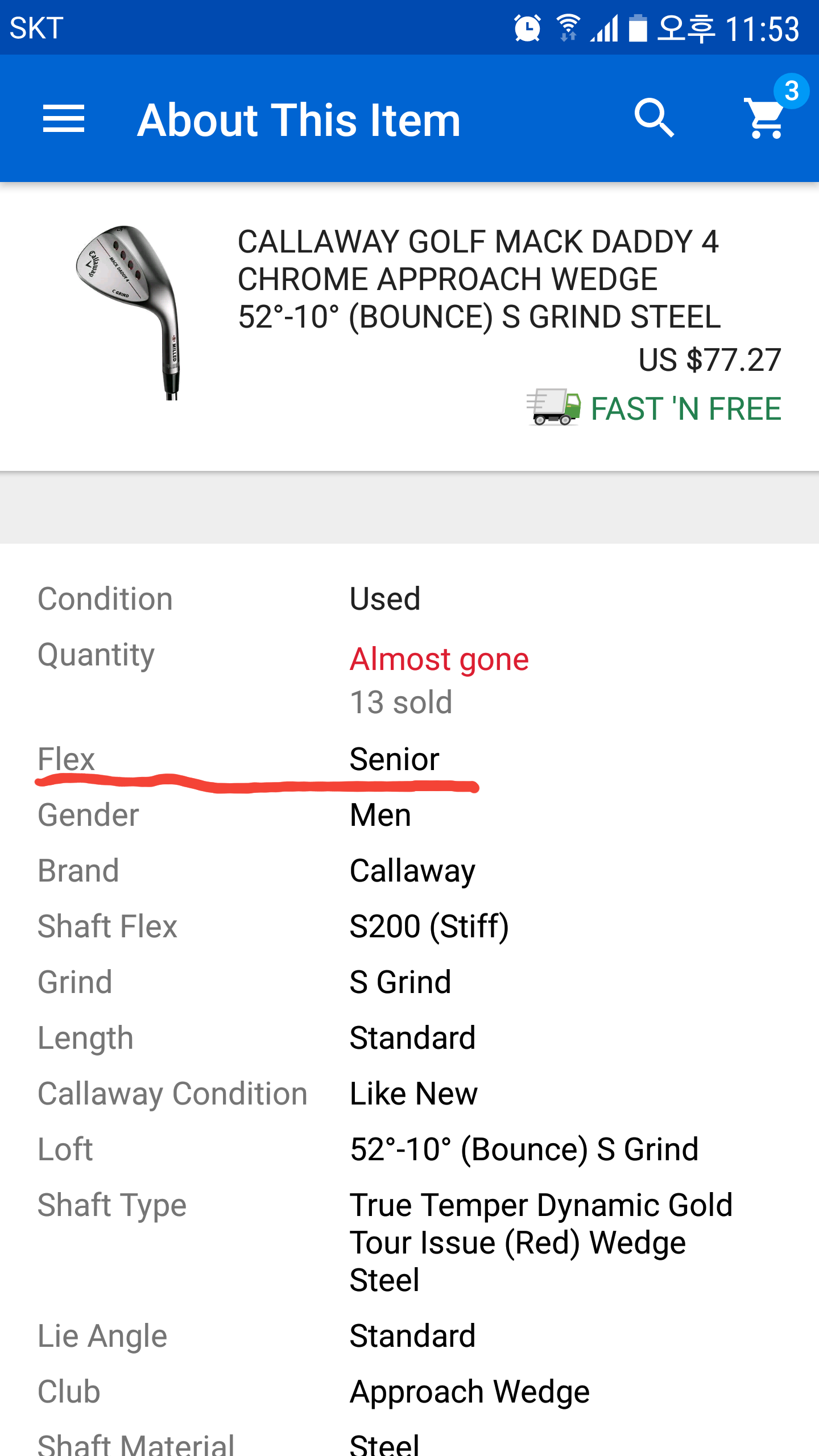 일반적으로 시니어는 레귤러와 여성용 사이에 위치하는 강도 입니다. | ||