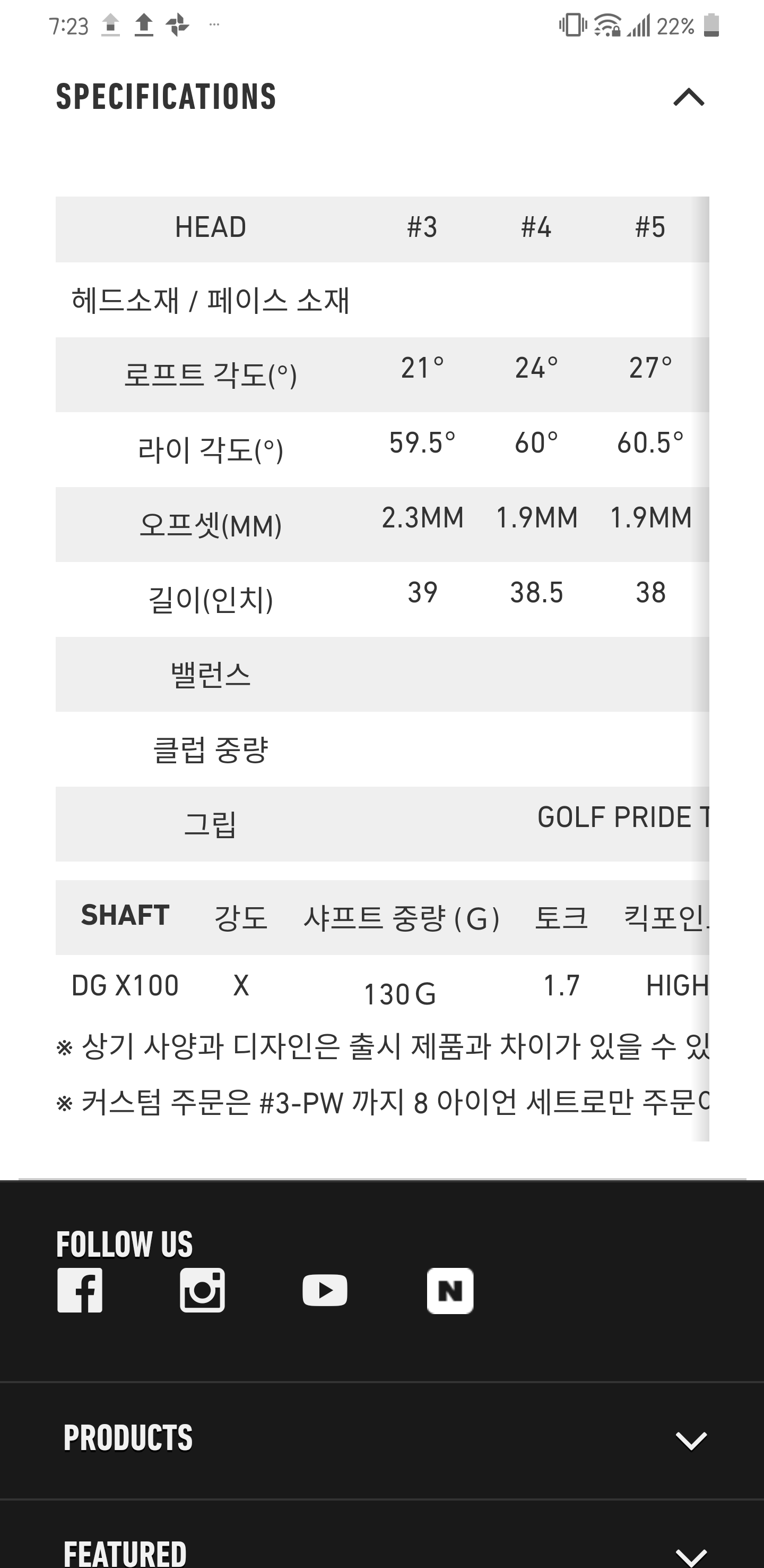 홈피주문제작: 샤프트, 그립, 라이, 로프트 주문.