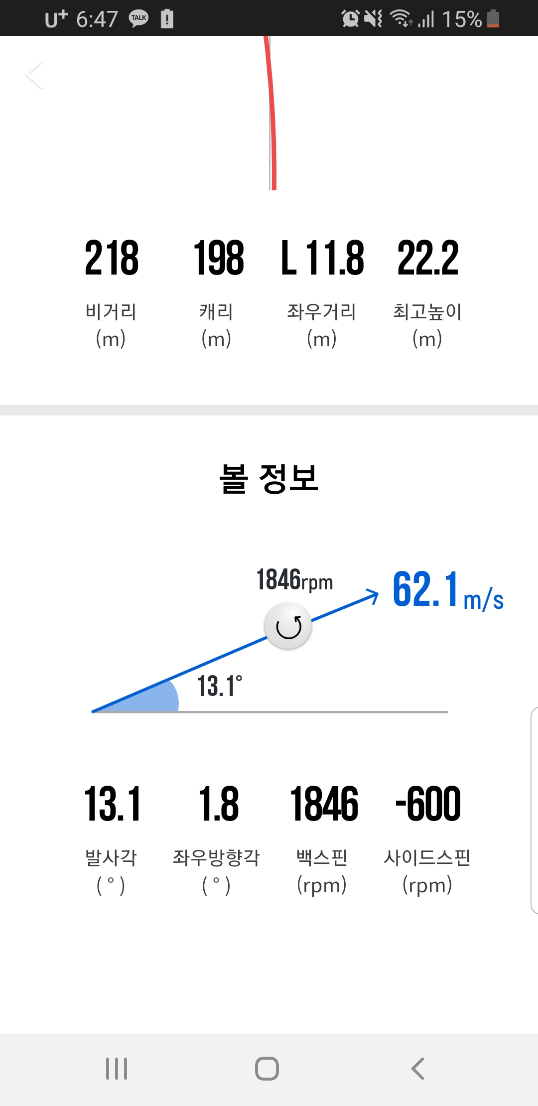 gdr의 백스피량은 탄도에 따른 추정치라 의미를 크게 둘수가 없고 (아예 인식 안하는건 아닌데 특정 구간이나 특정 상황에서만 인식하는 느낌?) 저탄도의 비거리는 지나치게 맞지가 않습니다. 저탄도의 잘맞은 공보다는 오히려 탄도가 높게 뜬 슬쩍 잘못 맞은볼이 더 멀리 가더군요. 저같은 경우 실제 라운딩 평지에서 230~250 정도를 보고 치는데 제 아무리 잘 맞아도(타감상) 230이 안넘어가더군요. 뭔가 문제가 있나 싶어서 죽어라 그부분만 집중하다보니 프로님이 와서 이게 그 문제가 있어서 너무 신경 쓰지 말라고하면서 이래저래 보여주셨습니다. 낮은 탄도 높은 탄도 에 따른 gdr의 토탈거리 |