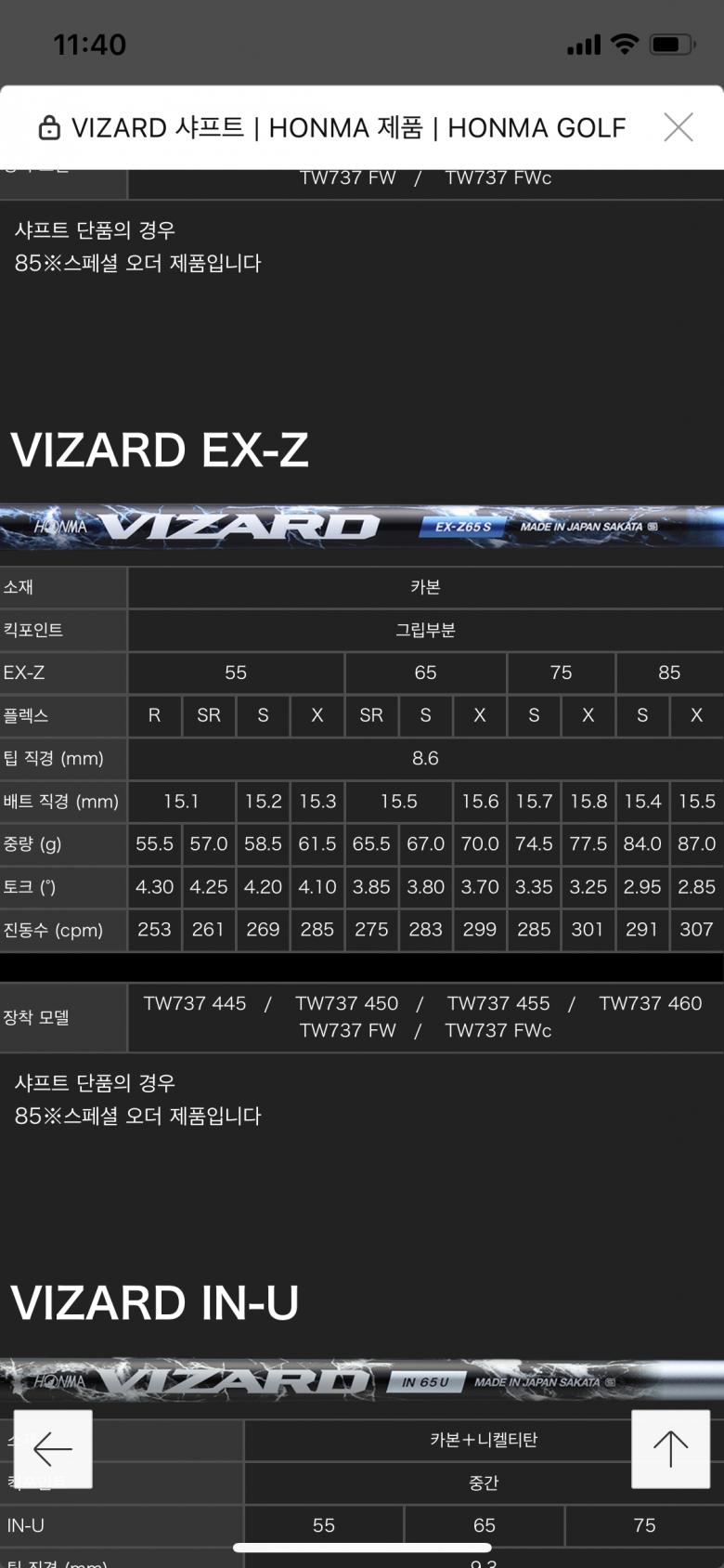 링크제품은 미국내수샤프트라 조금 다르겠지만, 기본제품은 s강도가 cpm 269 입니다. 투어ad 5x급 cpm 나옵니다.