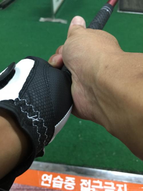 2일전에 드라이버를 교체하고 그립수정도 할겸 이리저리 잡아보다가 위사진처럼 무의식중에 왼손 엄지를 밖으로 빼버리고 스윙을하고있더라구요 그런데 엄지를 뺀순간부터 공이 미치도록 잘맞습니다 그렇게 심하던 슬라이스도 안날뿐더러 신주단지처럼 모셔놓기만하던 3번우드가 180이상은 슝슝 날라가네요