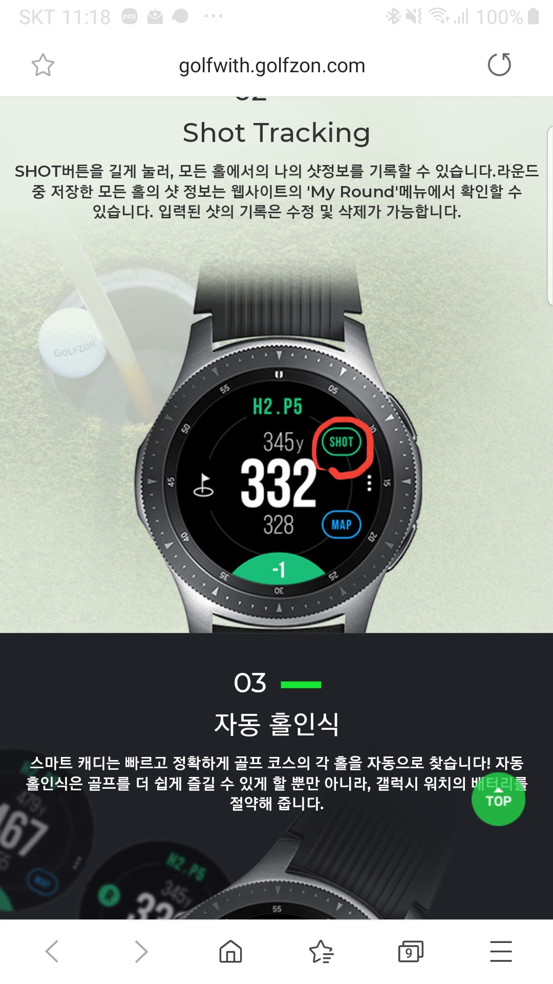 제대로 기록된 홀은 아래처럼 샷표시가 되있었고