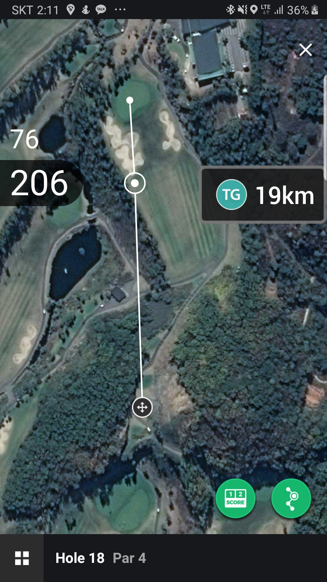 (좌측면의 숫자는 지도에서 움직임이 가능한 수동측정 bar의 거리이고 우측의 숫자는 트랙킹을 토대로한 샷 거리입니다.)