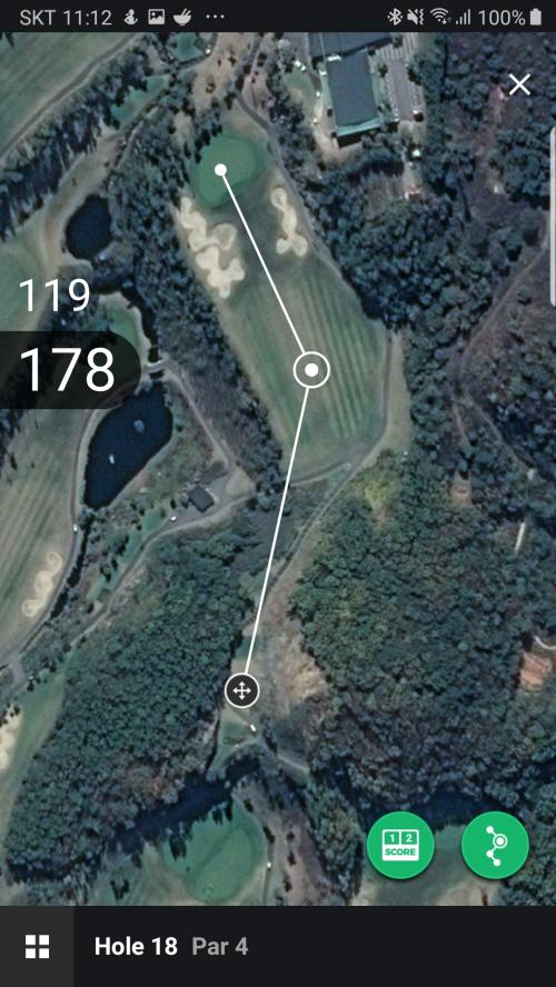 다만 역시 위 이미지처럼...드라이버는 잘 보냈는데 2번 자리에 친 세컨샷이 살짝 우측으로 감기며