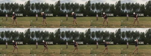 다운스윙에서 오른팔 팔굼치는 힙을 왼쪽으로 살짝 밀고 몸을 돌리기 시작하면 자연스럽게 옆구리에 붙어요 억지로 끌어당겨서 갖다붙이지 않아도 됩니다.
