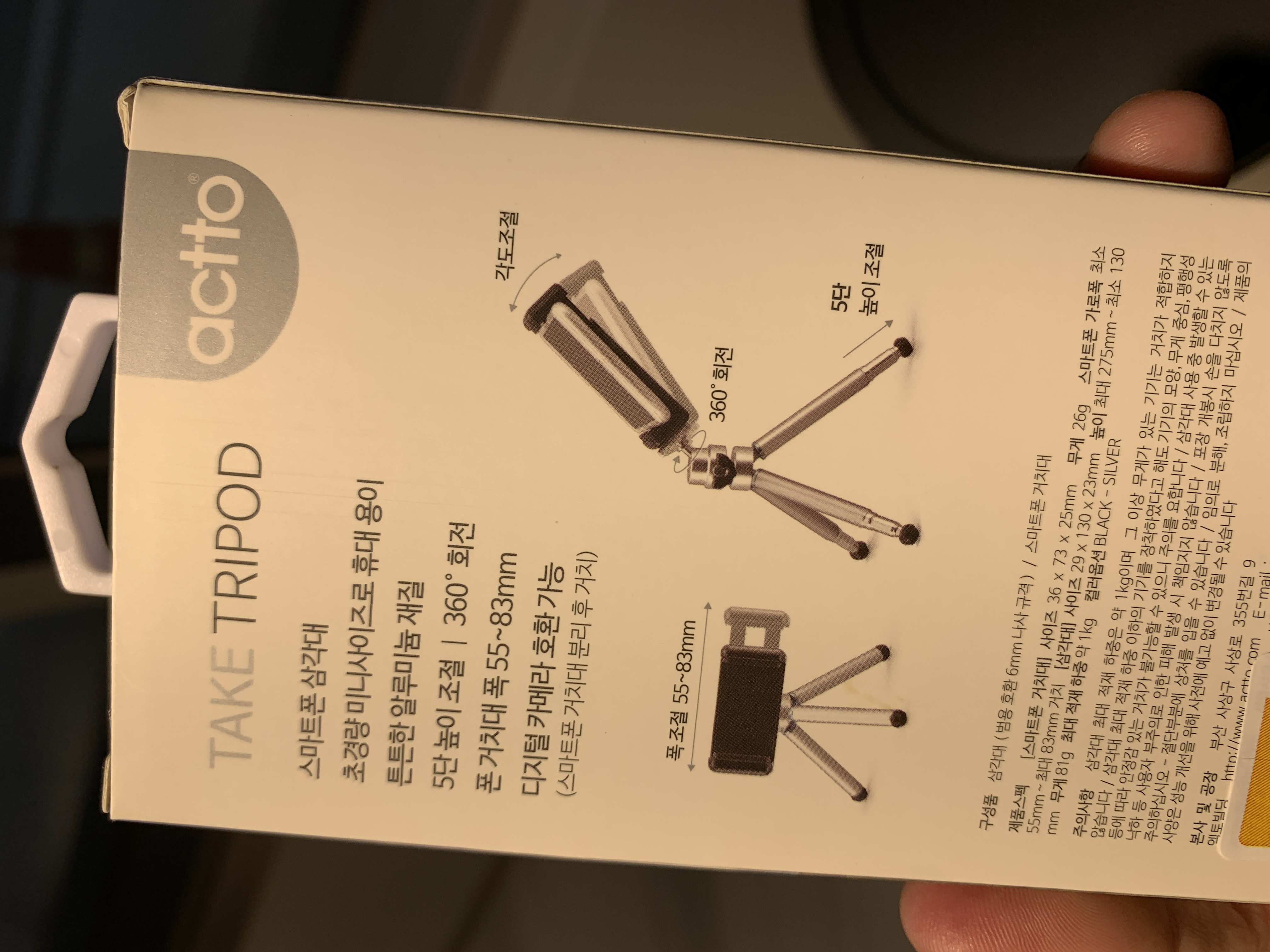 접은 사이즈가 작아 만족스럽습니다. 거치상태 훌륭하고요...
