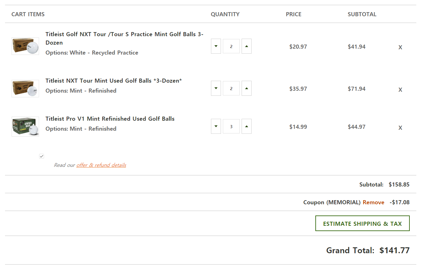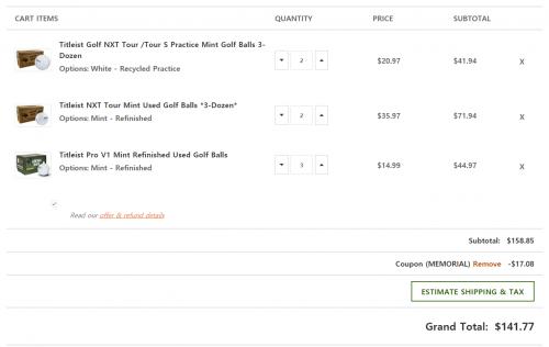 유즈드볼을 굳이 미국에서살필요가 있을까와... 국내보다 상태가 더 좋고 확실한 정품 로스트볼이라는 차이가 분명 존재하기는 합니다. 해상으로 받으면 짧게는 한달 길게는 두달을 잡아야하는지라 이정도 메리트에서 메리트가 있는지는 직접 선택하셔야합니다. 가성비는 누가뭐래도 국내보다 좋지만 당장 쓸수 없다는 (늦으면 8월초 라운딩에서나 사용가능하니) 것도 유의하시구요. | ||