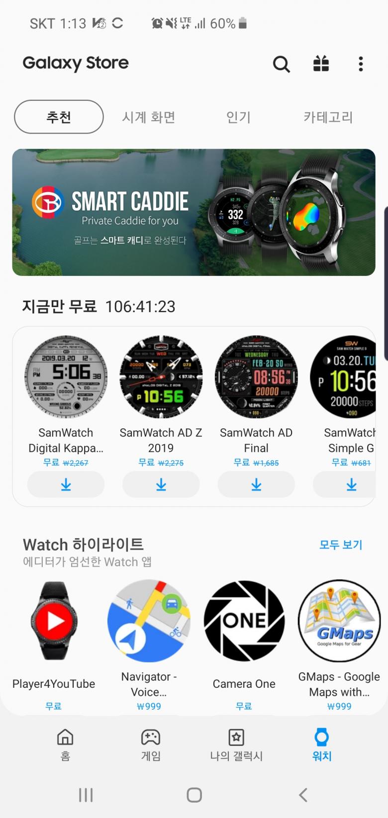 갤럭시 스토어에서 스마트캐디 검색/설치가 되나요?