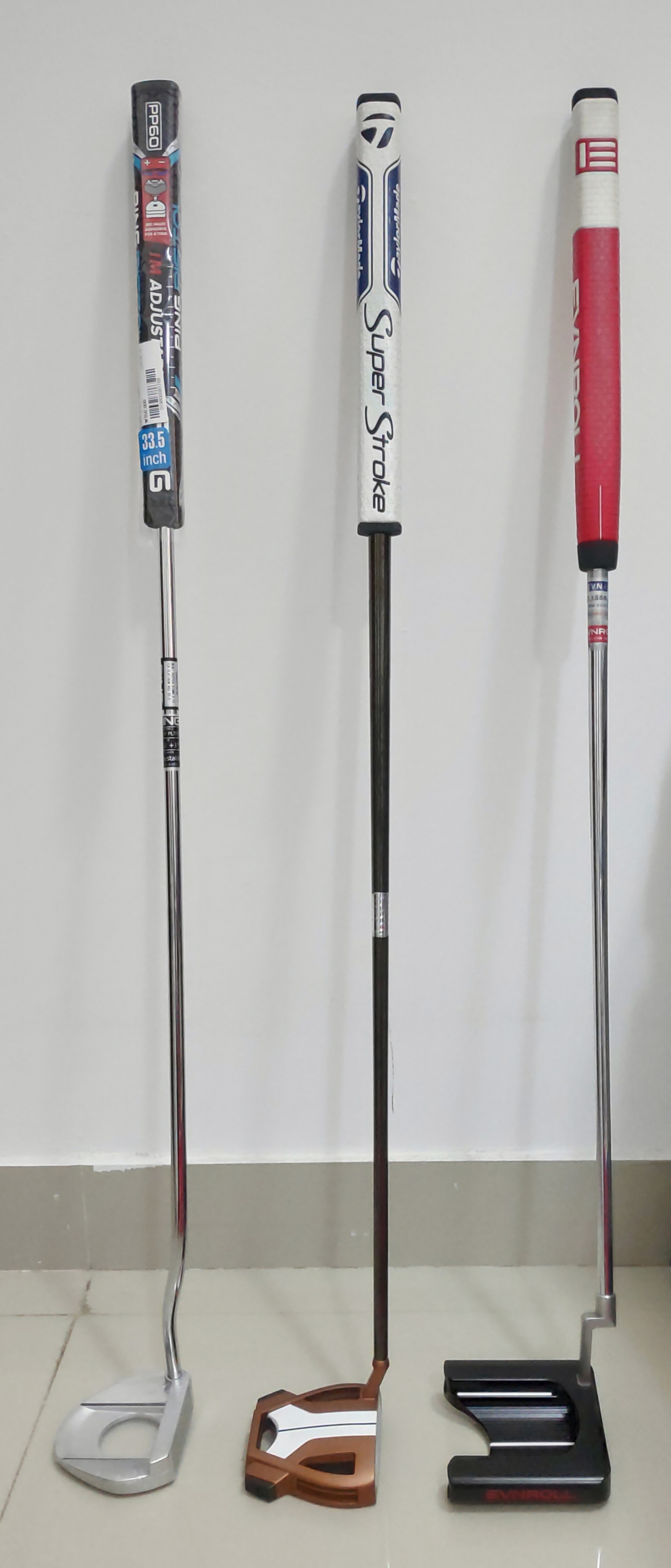 저의 퍼터 3총사 소개 합니다. 이븐롤 ER9 퍼터는 필드18홀 한경기에서 6개의 버디를 잡게 해준적 있는 효자라서 내칠 생각은 없고 다른 퍼터의 검증이 끝날때까지 품안에 데리고 있을 예정입니다.