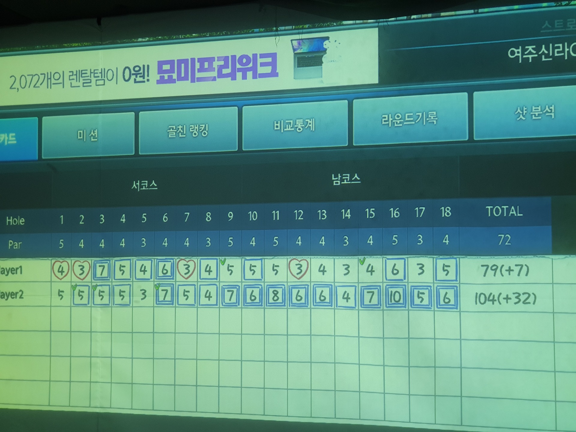 부럽습니다. 저는아직도 스크린 스코어가 필드 스코어보다 안 나왔어 스크린을 되도록 피하고 있습니다. ㅋㅋ