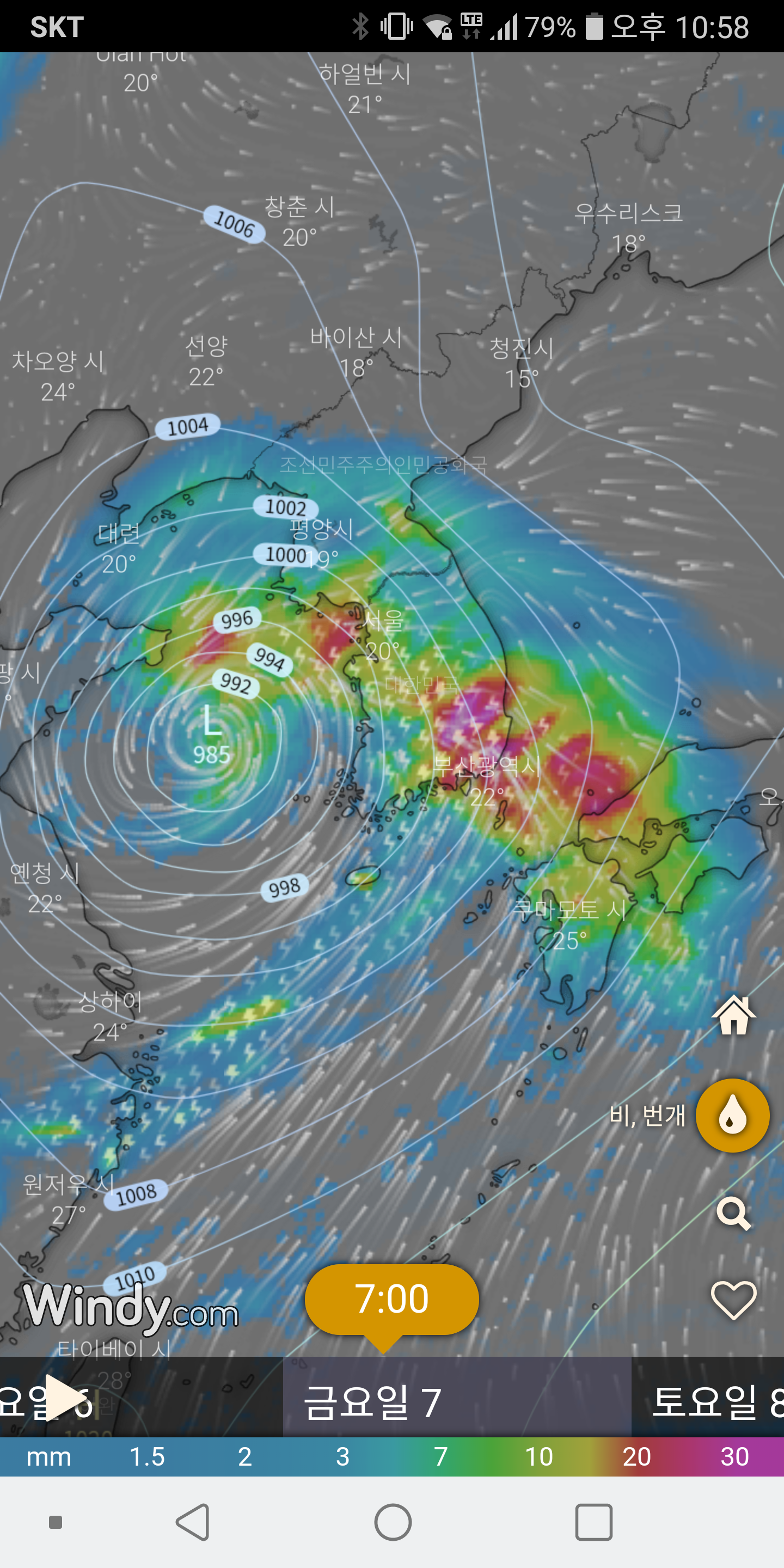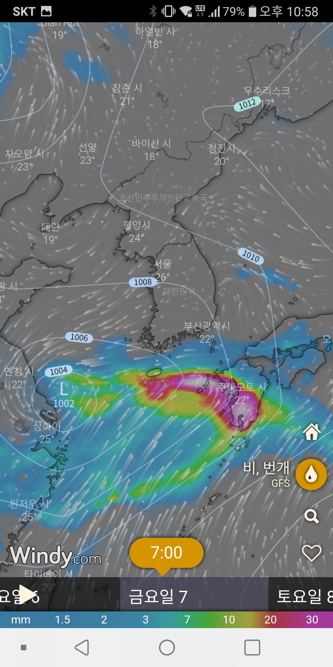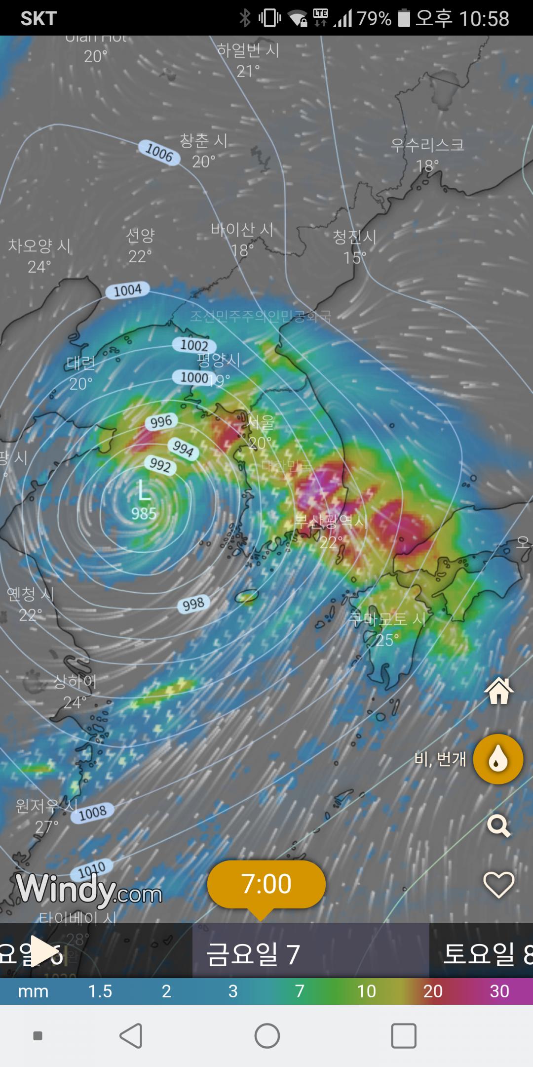 또다른 모델은 남부지방만 영향권 이네여..