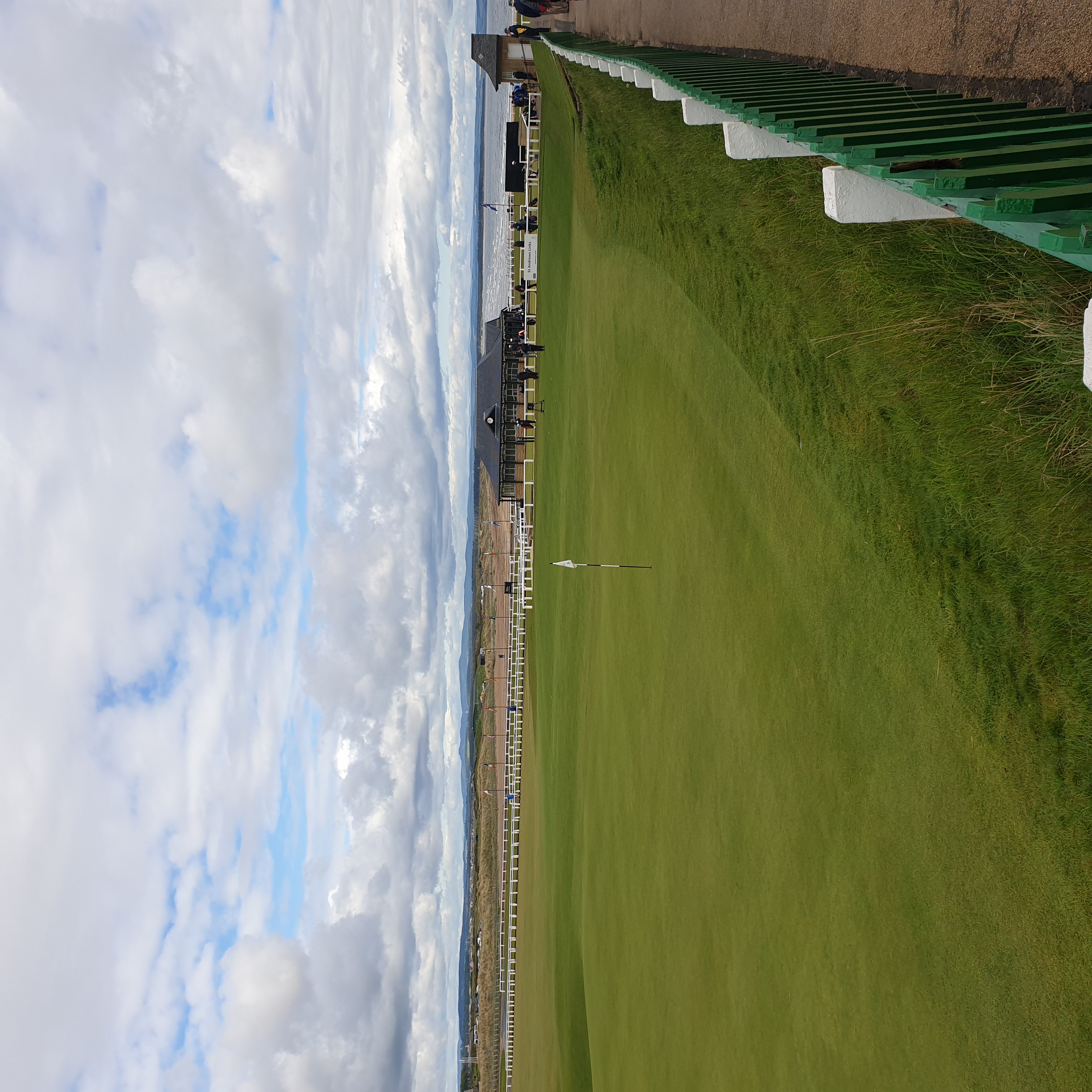 여기가 18번홀 그린인데 아직 아무도 도착하지 않았습니다. 바로 옆에서 1번홀 티샷을 준비하고 있습니다. 낮이 되니 관광객이 조금씩 늘어났는데 구경도 많이하고 약간 시끌벅적해서 티샷이 더욱 긴장될 것 같았습니다.