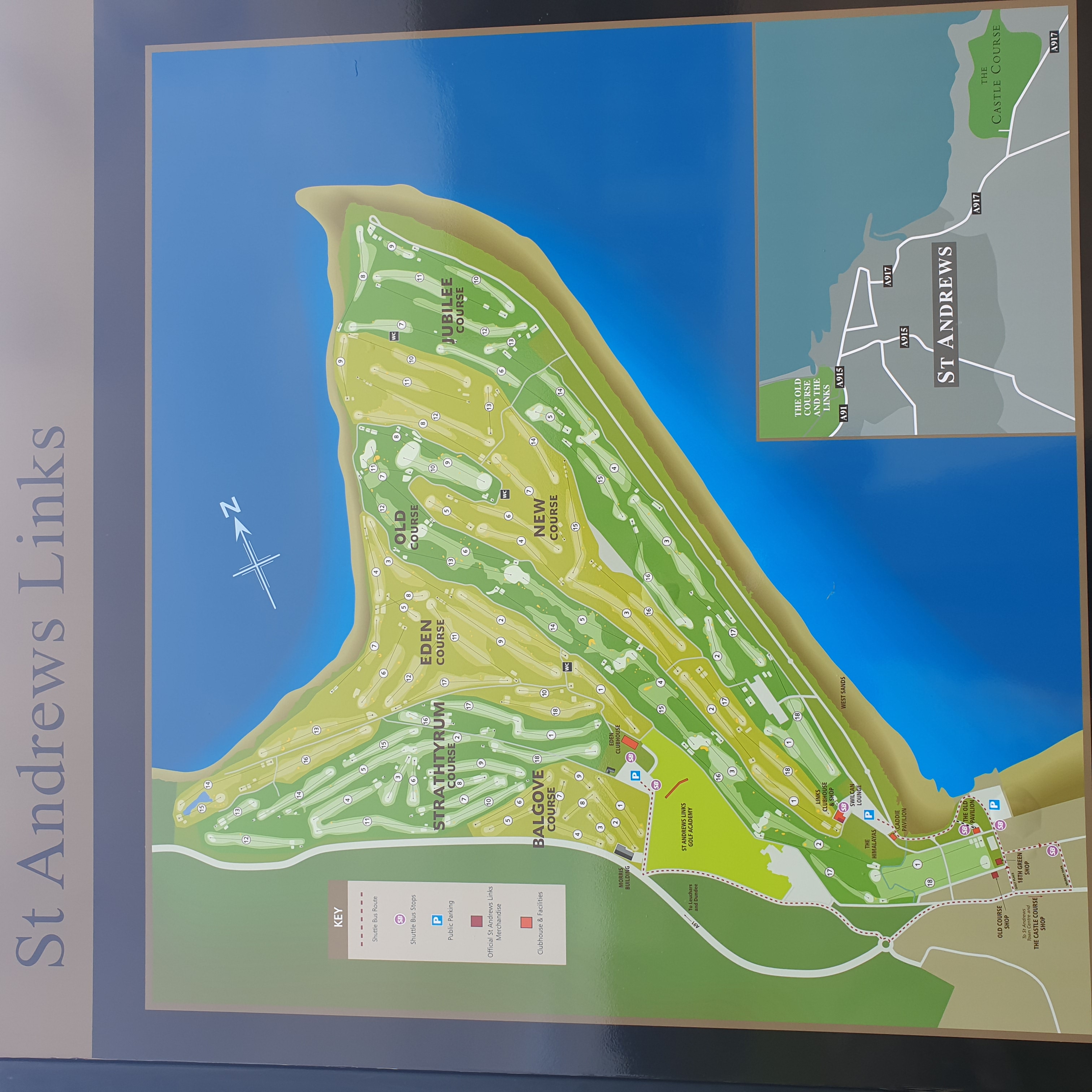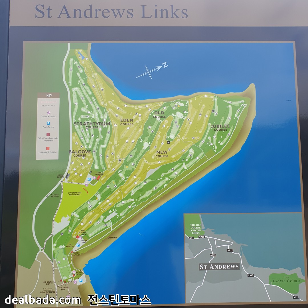 지도에서 보시면 아시겠지만 올드코스는 다른 코스들에 둘러쌓여있습니다. 따라서 관광객들은 1번홀과 18번홀만 구경이 가능합니다. 그리고 재밌는게 1번홀과 18번홀 페어웨이를 아스팔트길이 가로지르고 있는데 여기를 건너려는 주민이나 관광객, 차들은 멈췄다가 티샷이 끝나고 플레이어가 이동할 때 같이 이동하게 되어 있습니다.