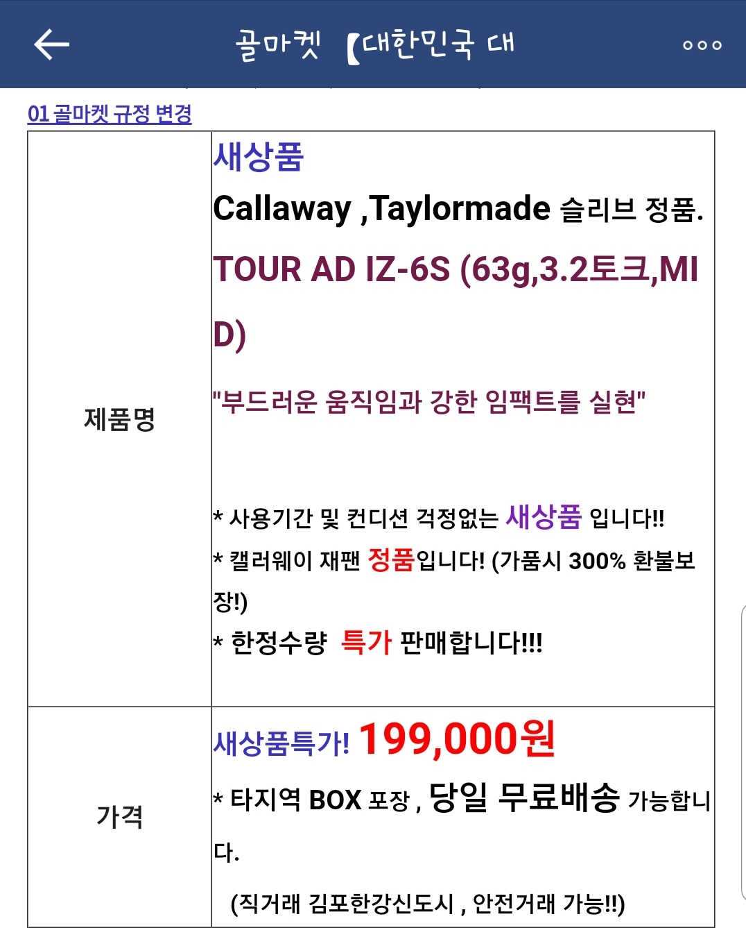남에 채 효과 인지 모르겠는데 Tour ad iz-6s 샤프트가 잘맞아서 중고로 구매할까 하고 골마켓 기웃 거리고 있는데요