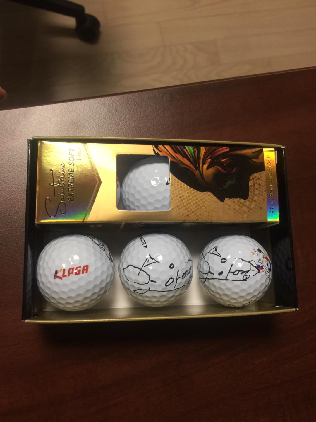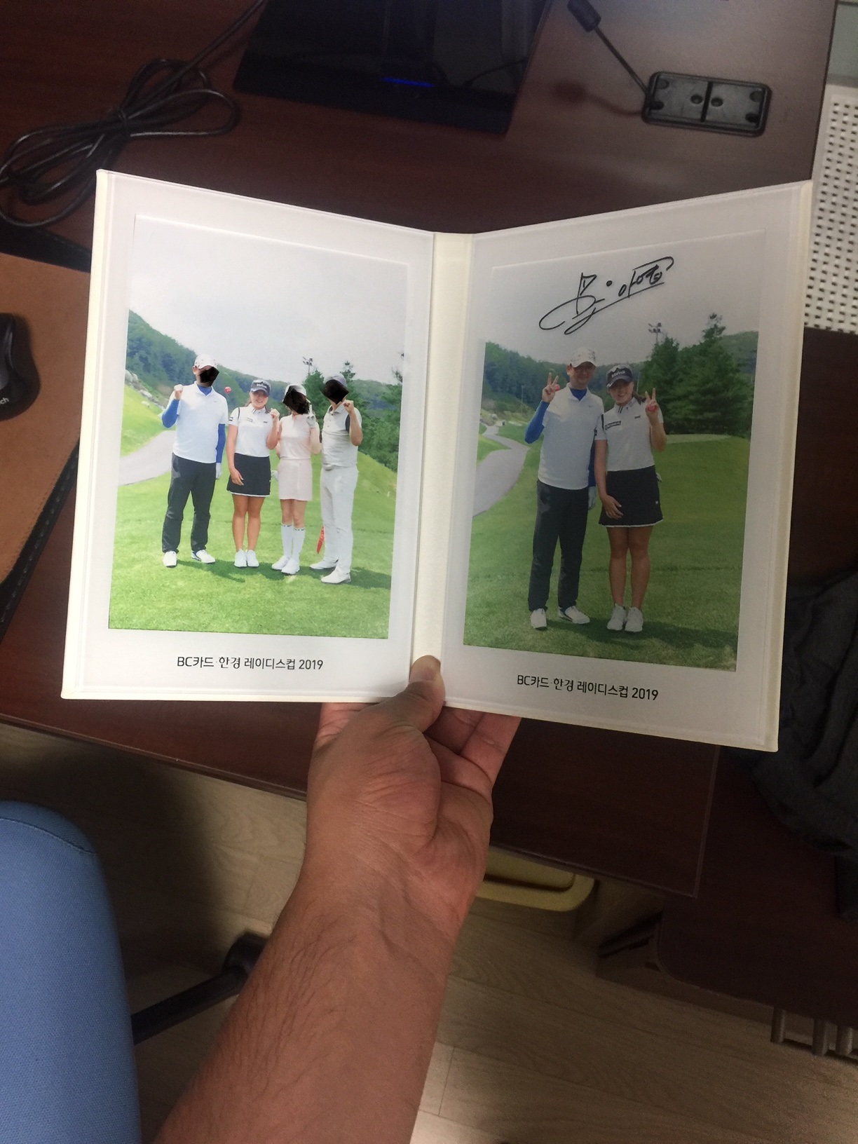 오전 라운딩때 촬영했던 사진이 개개인별로 액자로 나왔는데 거기에 싸인도 해주시고, KLPGA협회에서 나눠준 볼 6개중 3개에 싸인을 해주셨습니다. 나머지 3개는 받고싶은 프로한테 받으라고하시면서;;