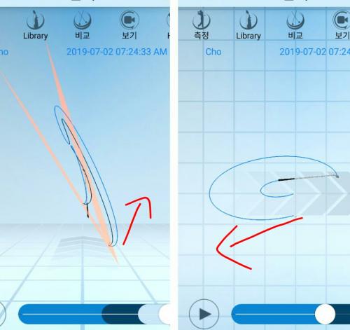 해보니 처음 백스윙 시작할때 헤드가 바깥쪽으로 그러니깐 몸에서 멀어지는 쪽으로 가서 되네요.