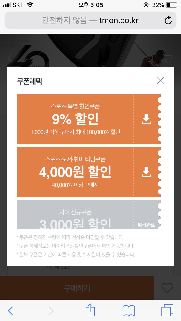 티몬 제품을 찾고 9% 쿠폰받아서 적용하고