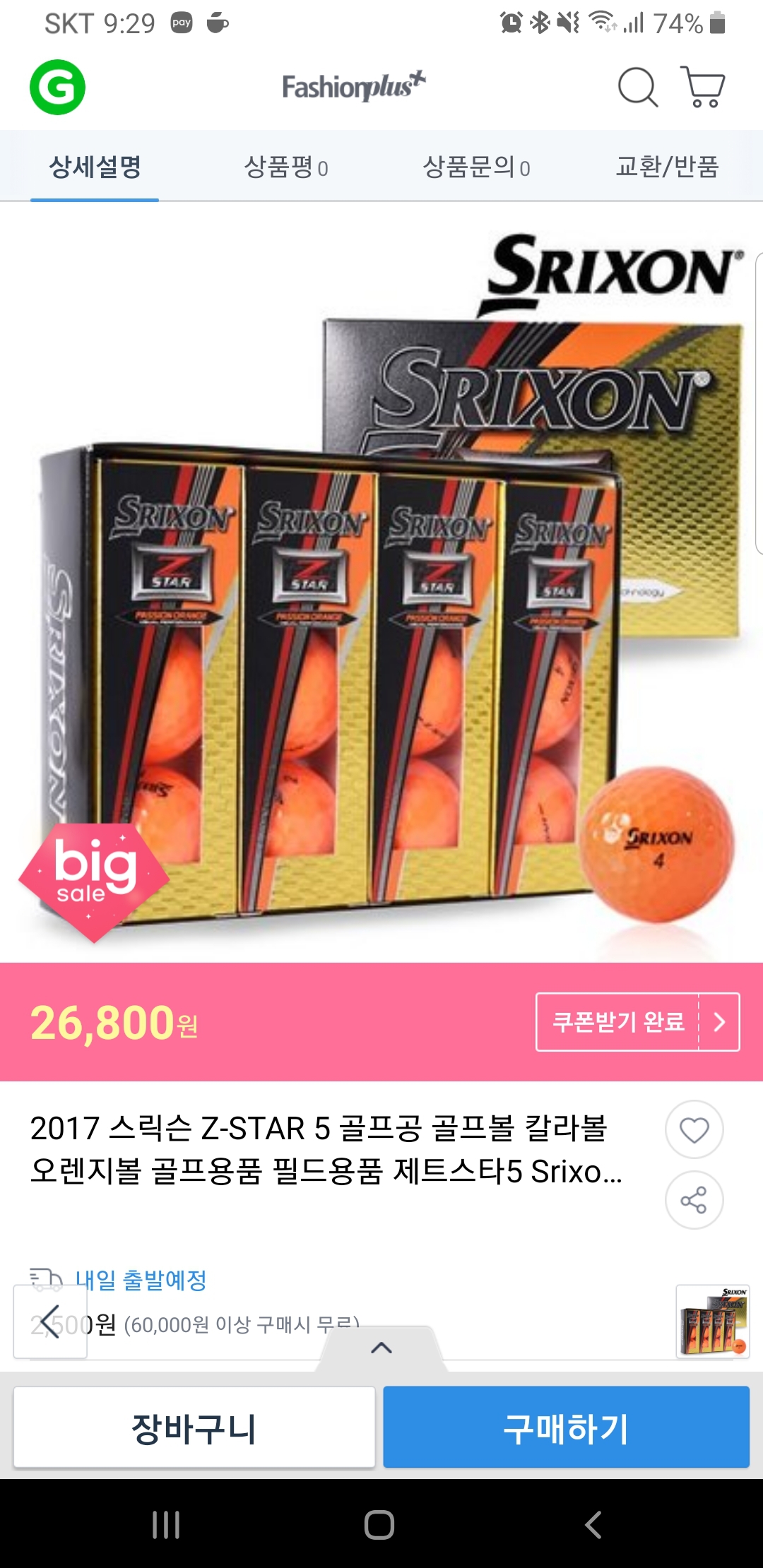 주문해주신 17 스릭슨 제트스타5 골프공 12알-:패션 오렌지 [취소] 재고소진이되어 품절취소 문자안내드립니다.