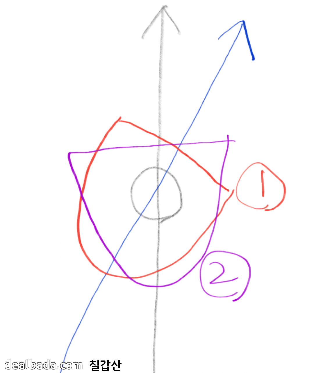 밀어치는 스윙에서는 1번일거 같습니다. 2번의 모양으로 한시방향으로 볼을 날리는건 불가능할거 같아요.